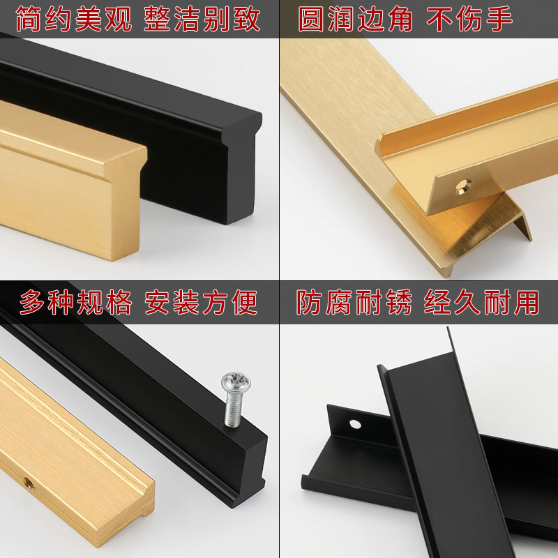 Modern minimalist custom long version through body cabinet door handle through top lengthened black gold integral cupboard strip wardrobe handle