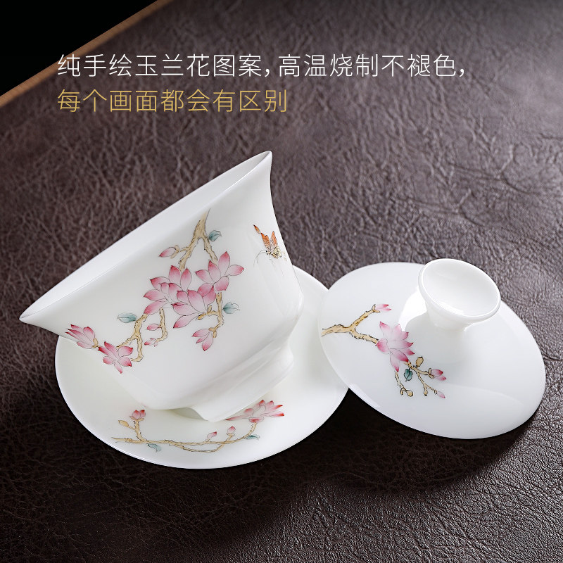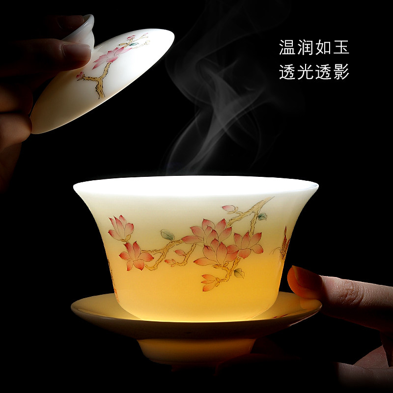 Wonderful Lotus-scented goat-fat jade porcelain hand-painted jade Orchid Three-only cover Bowl White Porcelain Tea Bowl Tea Cup Single Tea Cup