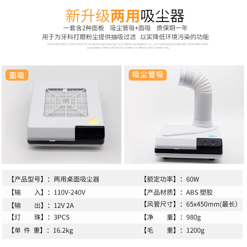 Oral Dental Technology Worker Desktop Vacuum Cleaner Denture Processing Factory Grinder Vacuum Small Portable Vacuum Cleaner with Lights