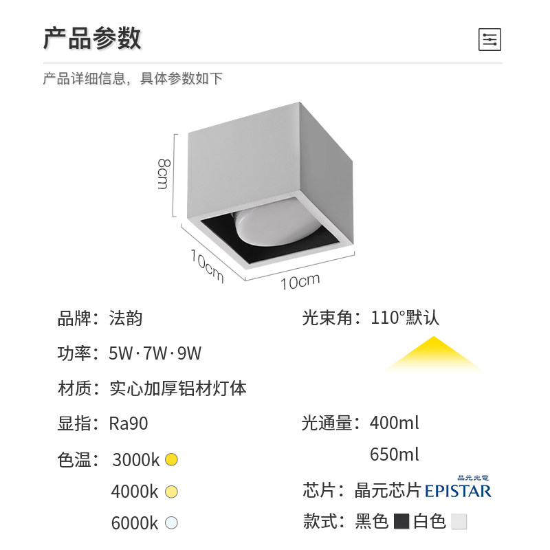 All-white-5W-white light 6000K All-white-5W-neutral light 4000K All-white-5W-warm light 3000K All-white-7W-three-color dimming All-white-9W-