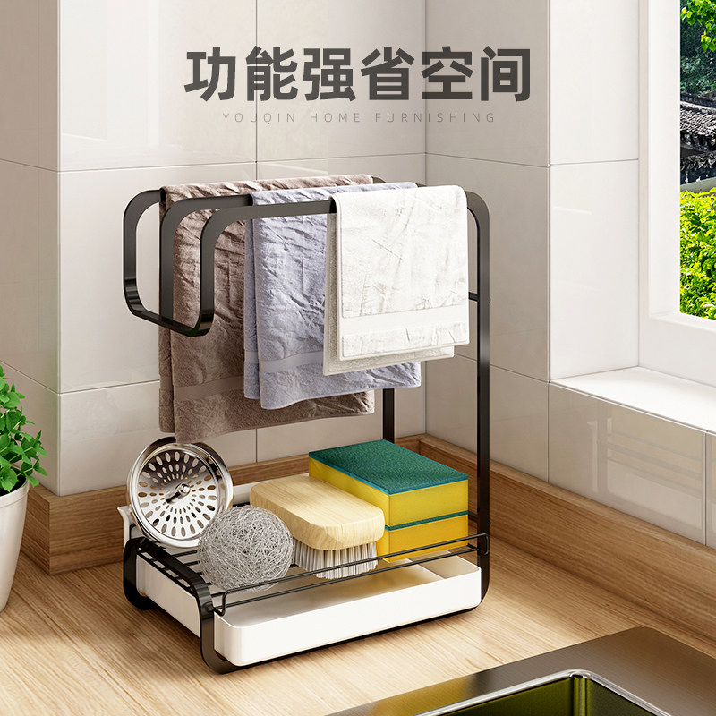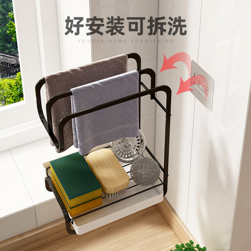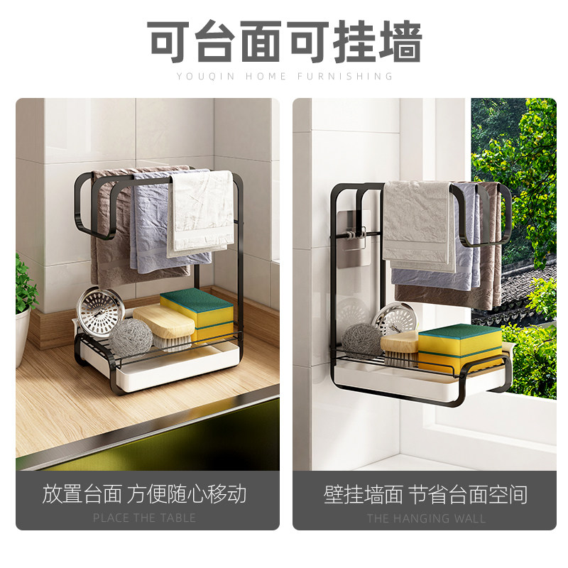 Rag Rack Kitchen Sink Shelf Home desk surface wall-mounted vinzer Dishwashing Cloth Shelf Towel Drain rack