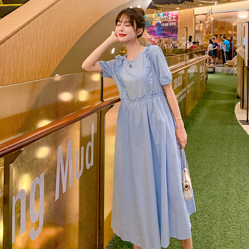 Pregnancy maternity dress Summer style Fashion easing Less-clear New Long version Summer Ocean dress collection waist display slim short sleeves Long dress