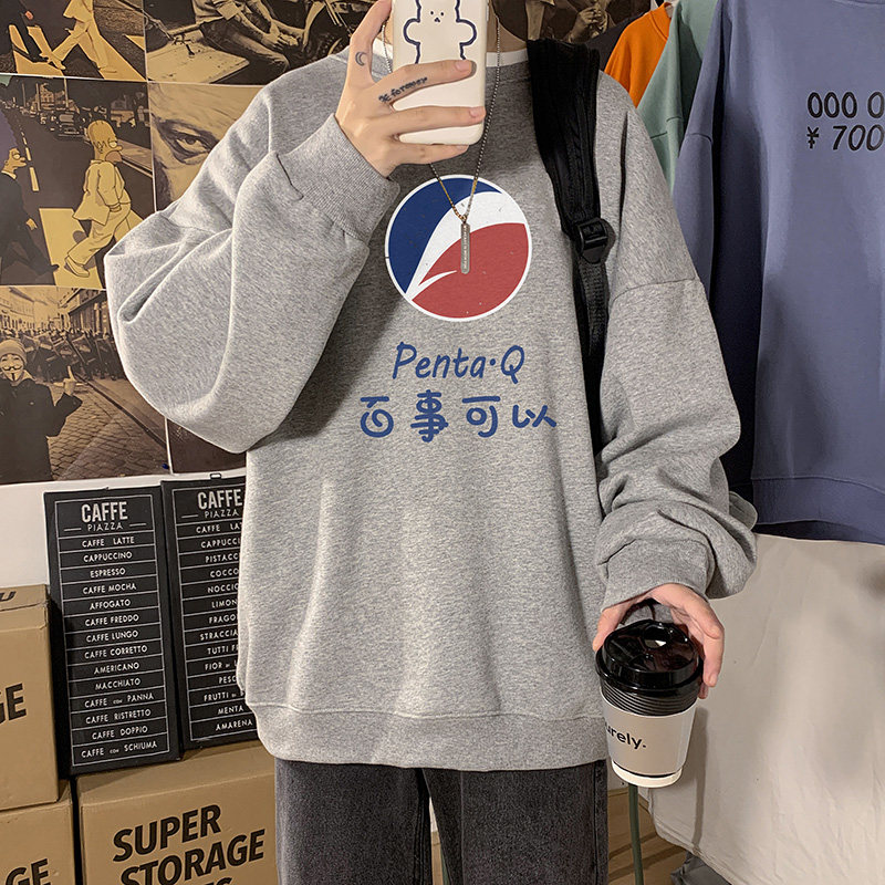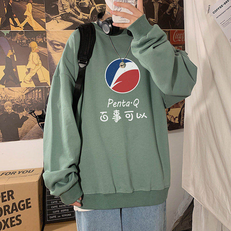 Crew neck vintage hooded sweater men's spring and autumn season 2021 new top clothes ins tide large size loose jacket