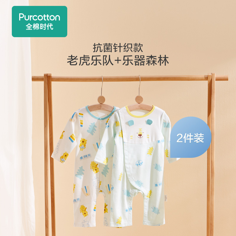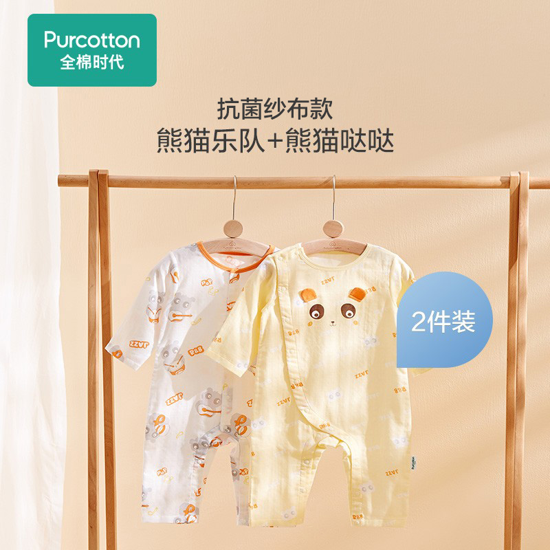 Full cotton era Spring summer freshmen baby Even swarm with antibacterial pure cotton cotton cloth Children's baby khaki climbing suit men and women