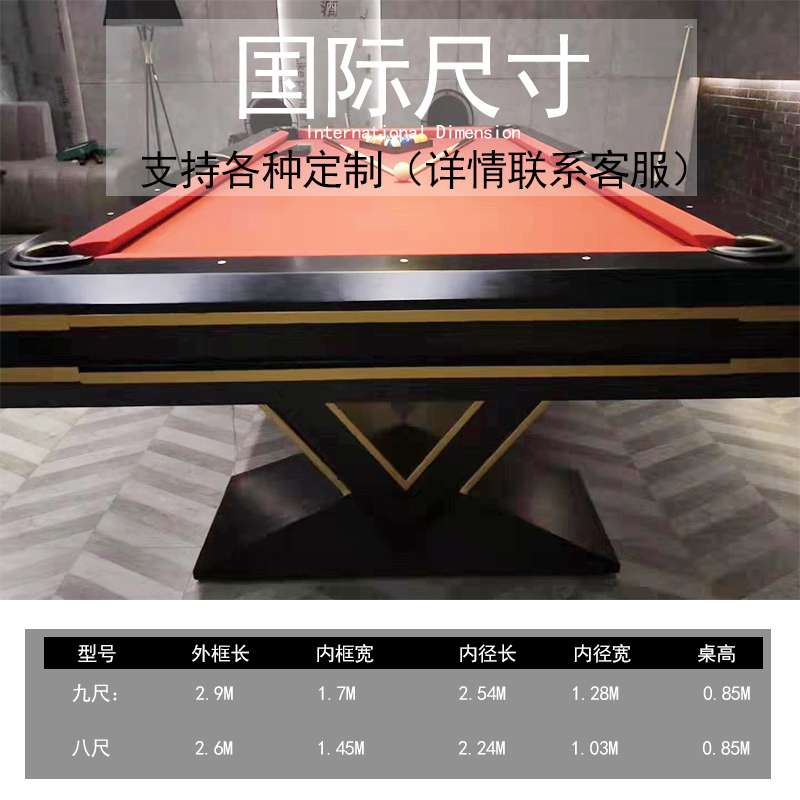 V-type simple pool table Standard commercial high-end club villa custom two-in-one black eight pool table Household