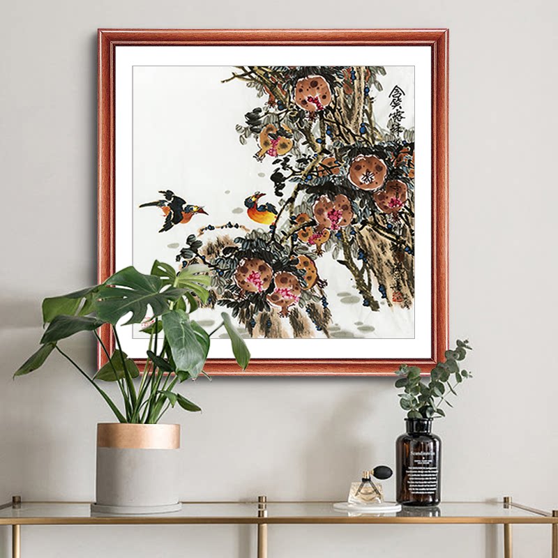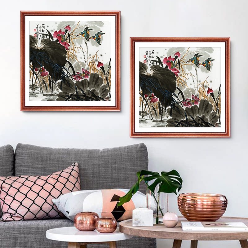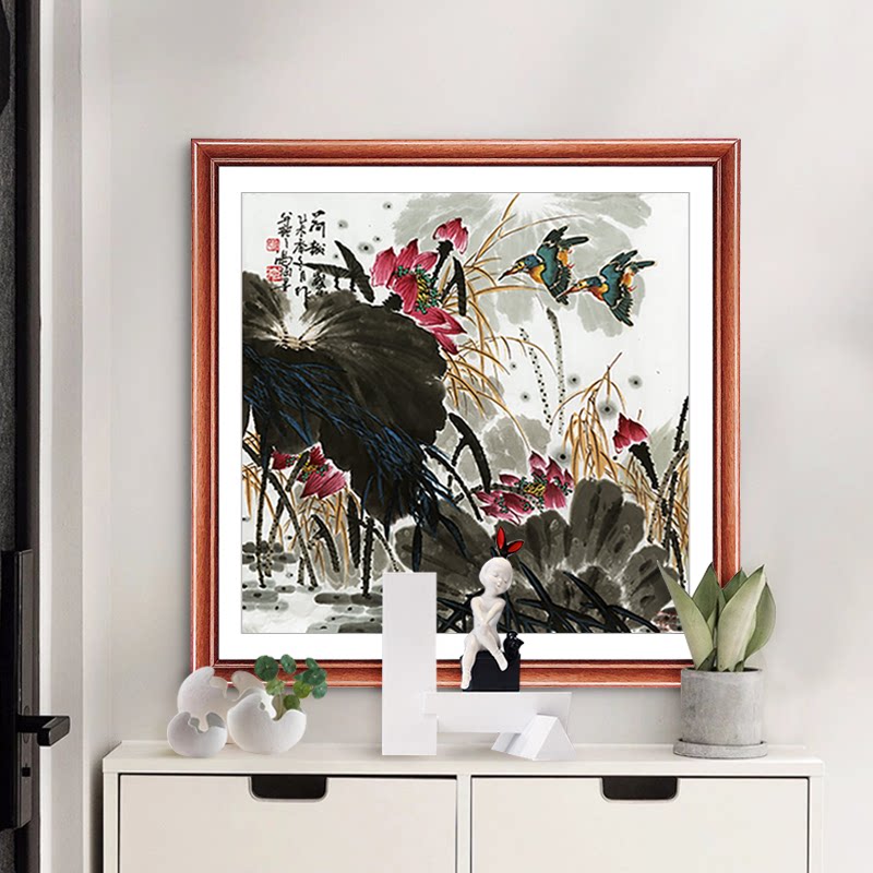 New Chinese style dining room decoration painting entrance entrance square ink painting lotus nine fish figure hanging painting Chinese style wall painting