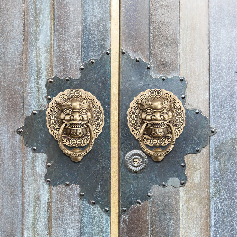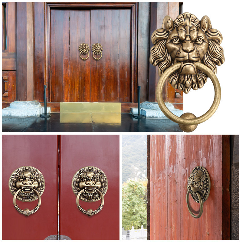The door pulls hand-hand pure bronze tiger door Ring the head of the beast head pulls the retro-ancient antique villa ancient copper door handle
