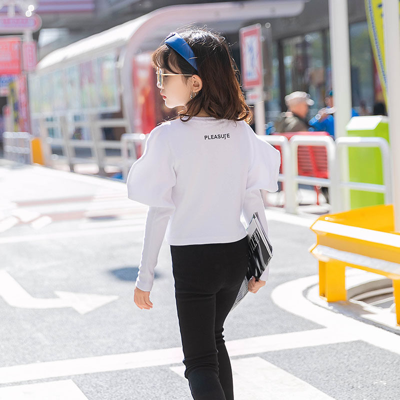 Girl Bubble Cuff Blouse 2022 Spring Dress New CUHK Boy Foreign Pie Pure Cotton Inner Lap Clothes Children 100 hitch T-shirt tide