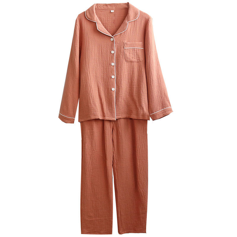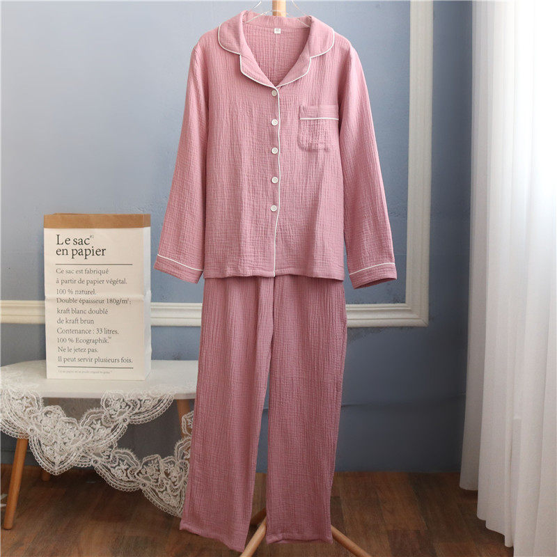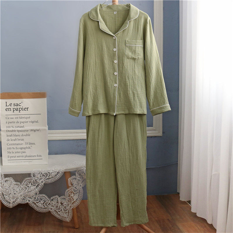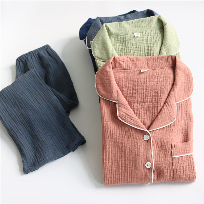 Lovers pyjamas woman men's spring autumn season pure cotton long sleeve crepe cloth double layer full cotton yarn pure color large size size home suit suit