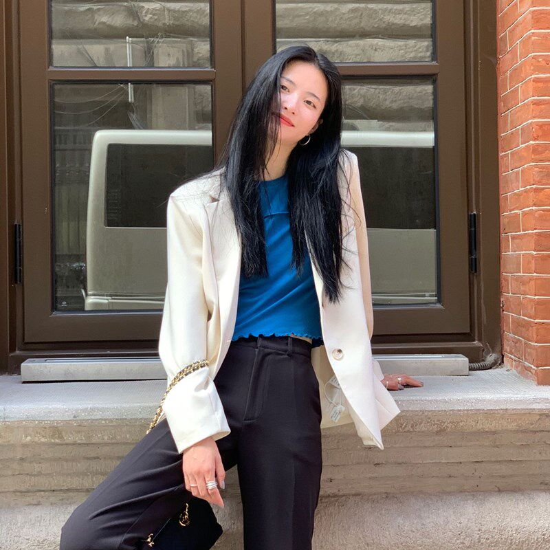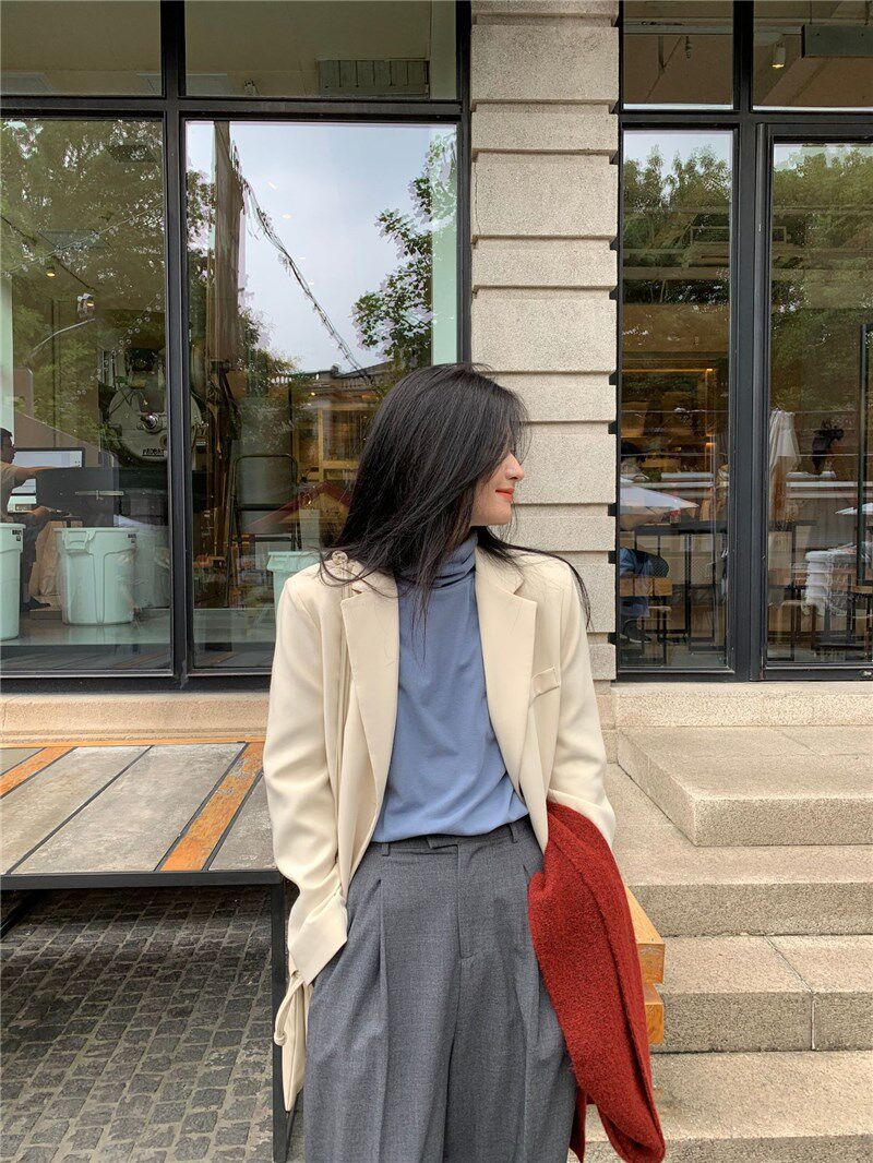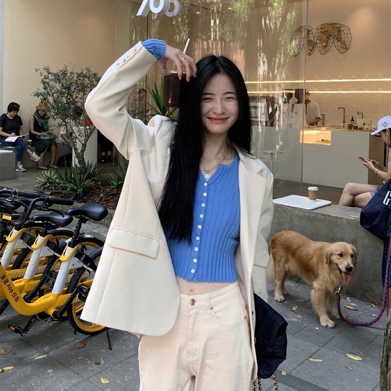 MSTOKYO port wind fried street beige blazer women's autumn design sense niche net red thin casual suit