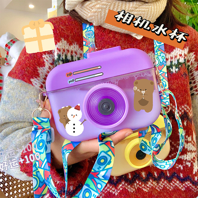 Cute children's creative camera water cup girl heart Korean version of donut lanyard personality kettle kindergarten primary school students