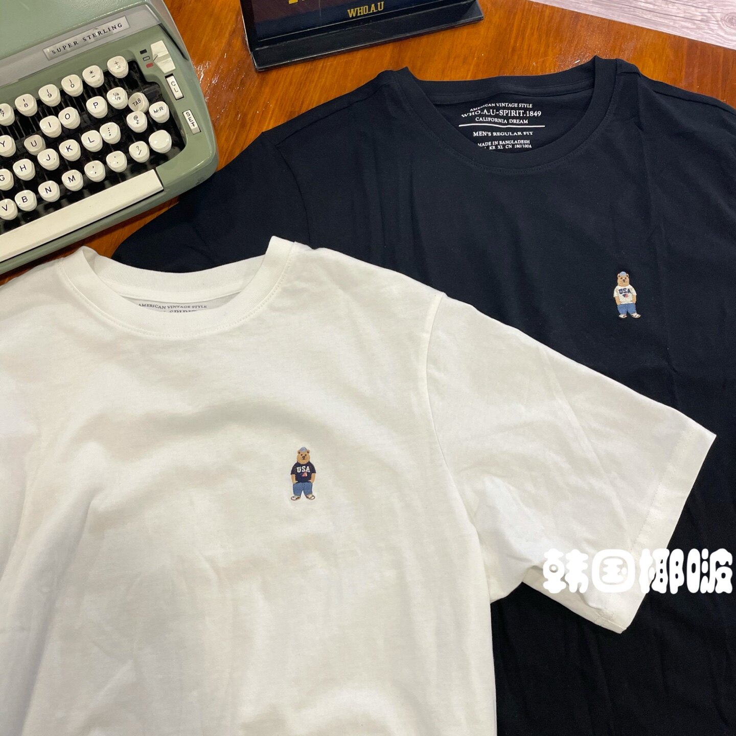 Korean Yebo whoau direct mail new 2PACK 1 pack 2 pieces solid color bear embroidery short-sleeved couple models