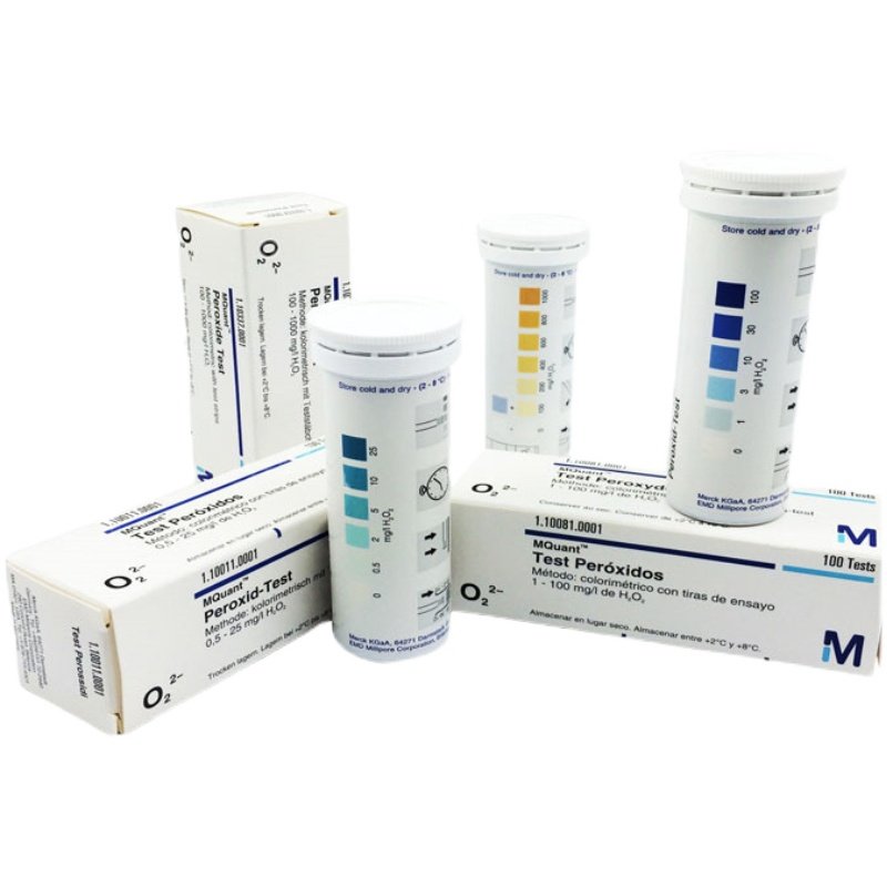 Merck hydrogen peroxide test paper (0 5-25mg l Merck hydrogen peroxide test paper (1-100mg l Merck hydrogen peroxide test paper (100-1000mg l Merck nitrous acid)