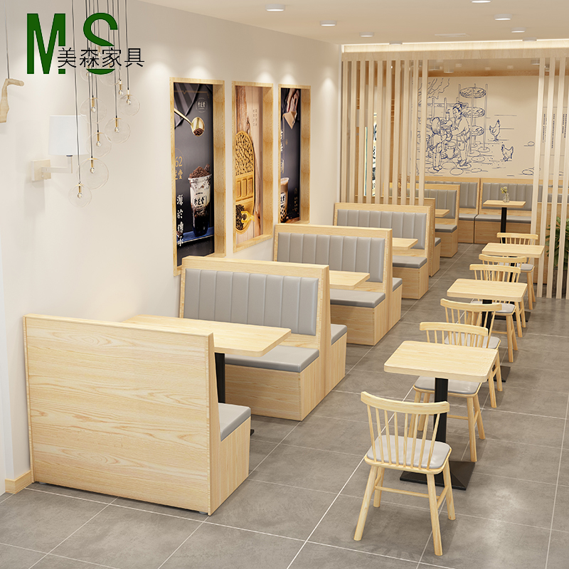 Milk tea shop table and chairs Combined Custom leaning against wall Hot Pot Cassette Sofa Themed Dining Room Dining West Dining Cafe