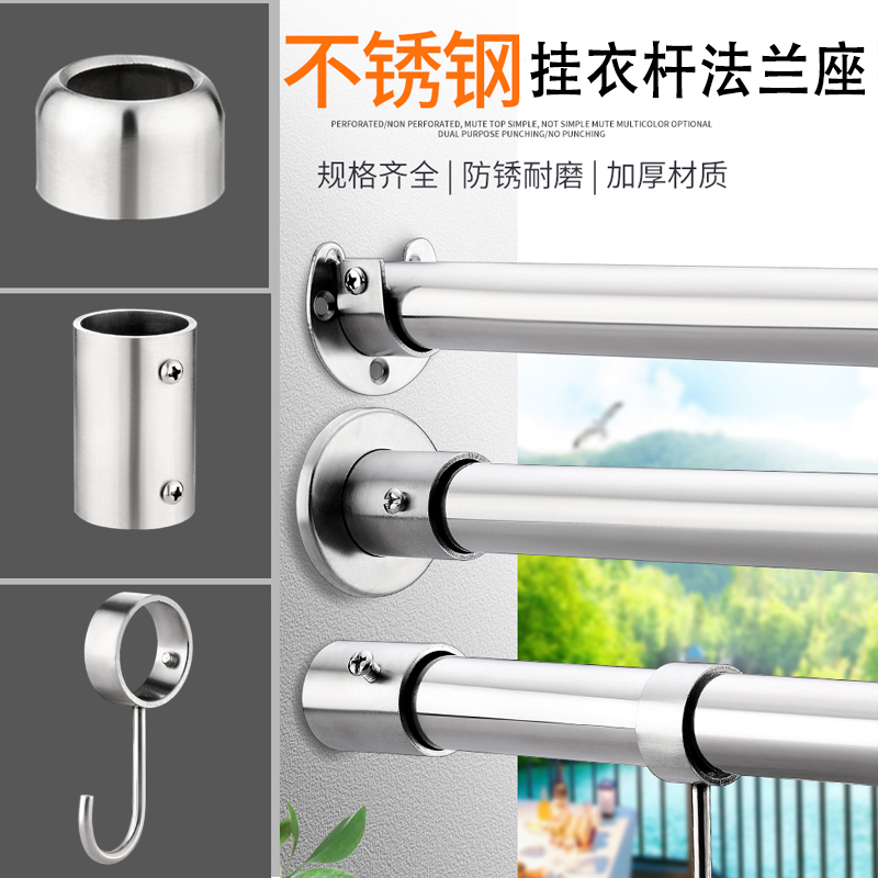 Stainless steel pipe flange seat wardrobe hanging clothes pole seat tots bath curtain rod clotheshorse fixed base round pipe five gold accessories-Taobao
