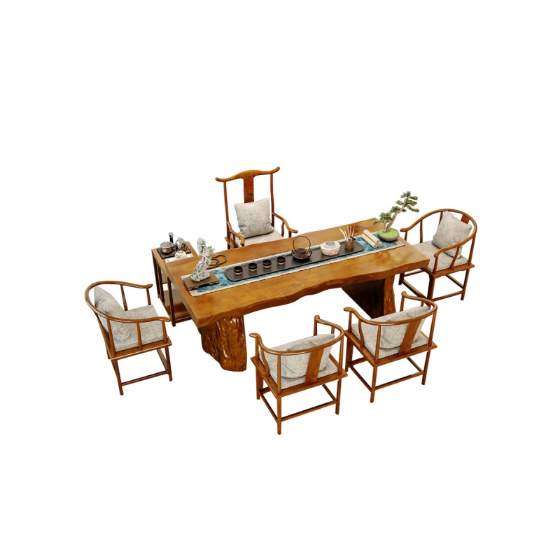 High-end tea table and chair combination new Chinese-style large board tea table office Zen whole board Kung Fu tea table balcony solid wood