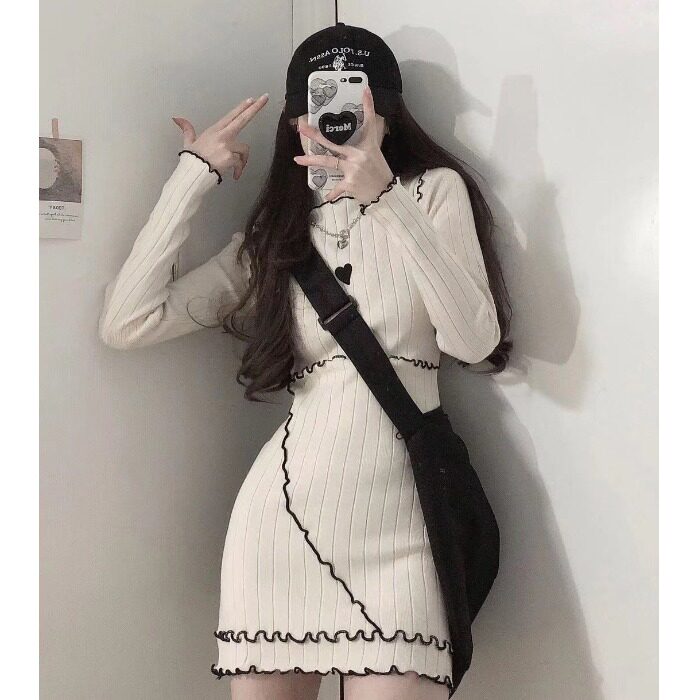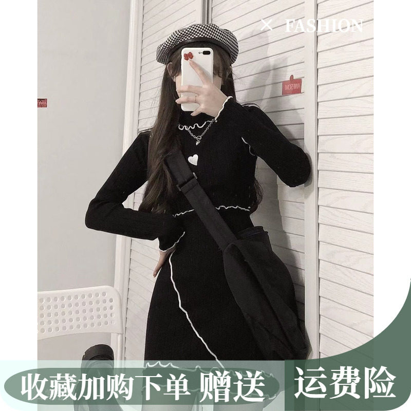 Small sub-body with bottom-length sleeves knit foreign dress children Early spring days 2022 New tight sweater dresses