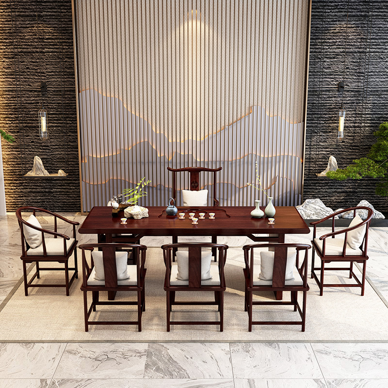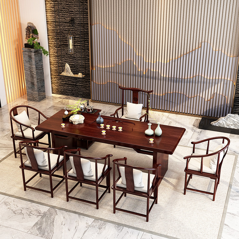 High-end log new Chinese solid wood tea table tea table and chair combined tea set one office tea table board