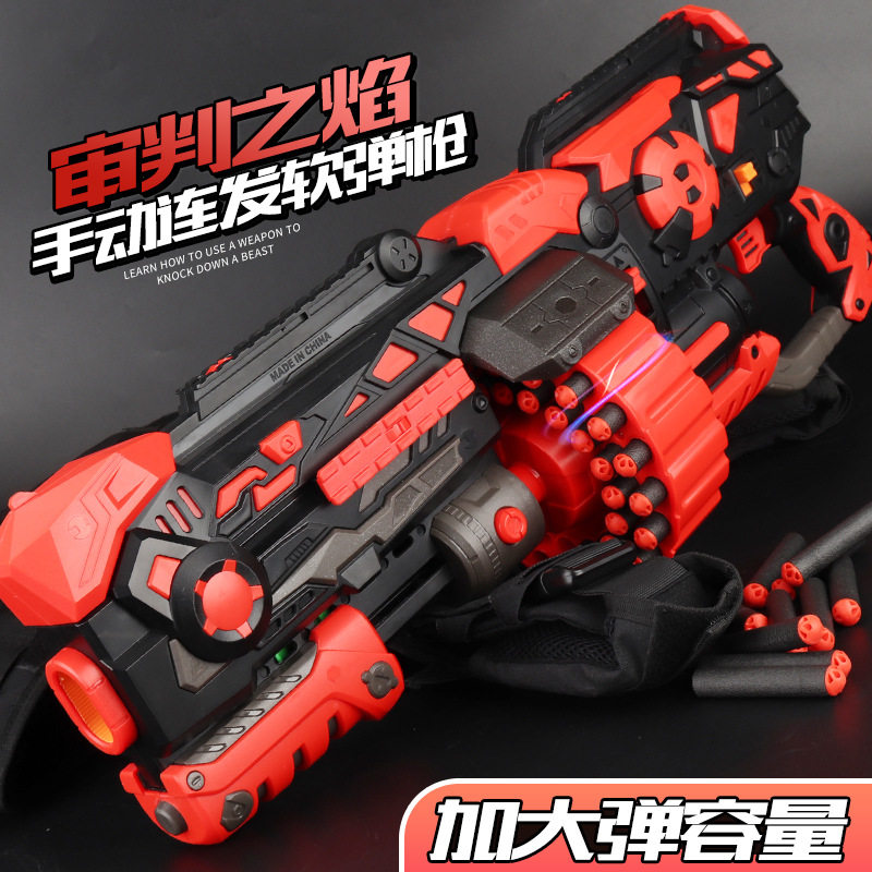 Medium pistol with cartridge clip 256 ejection soft play red incandescent electric soft play with extreme light electric soft bomb manual style 40 hair large turning wheel soft bomb to fuchpin bomb chain soft bomb (20pcs bullets)
