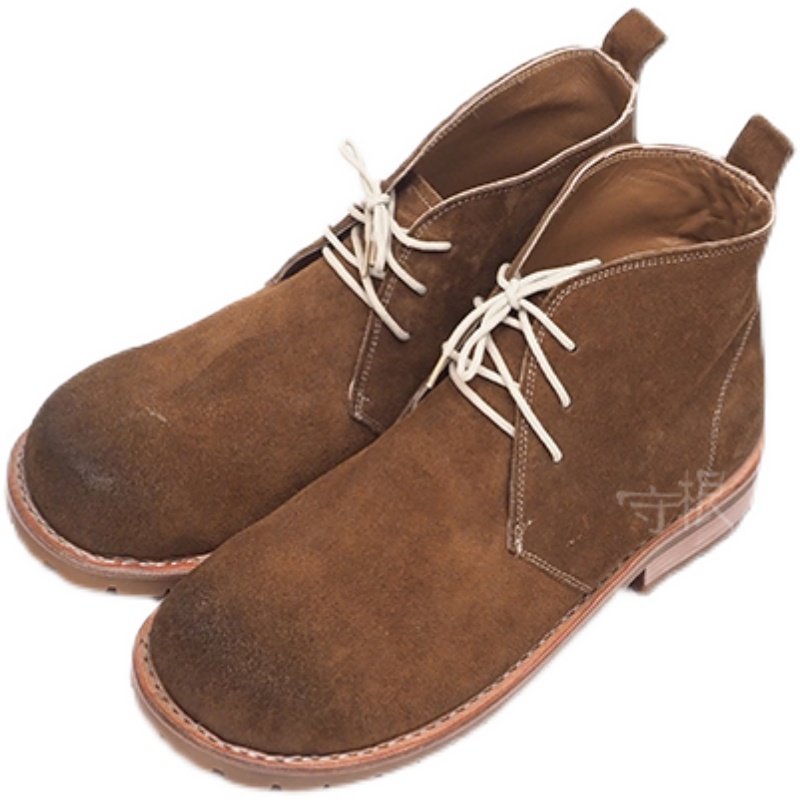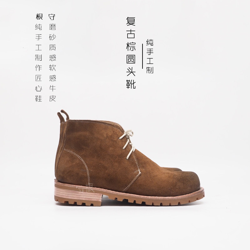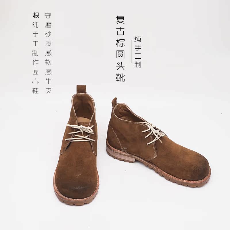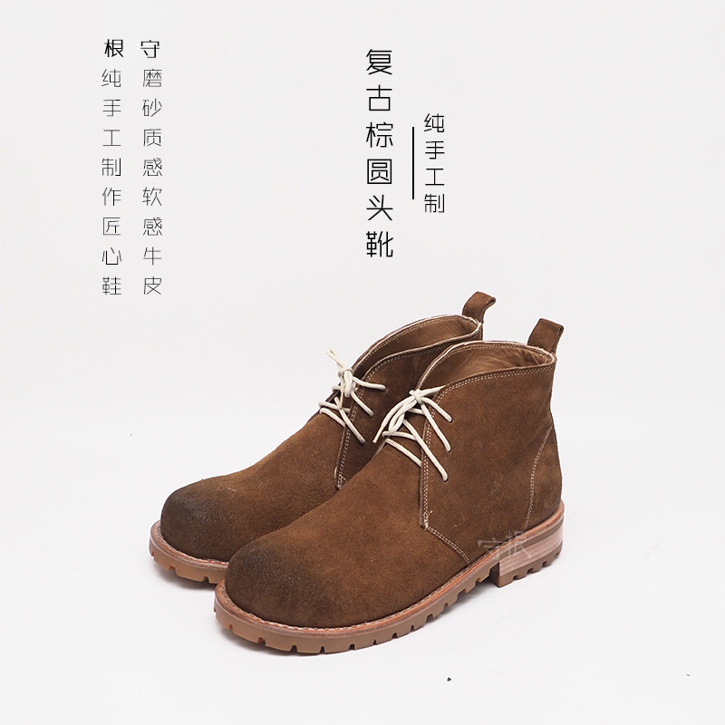 Retro Casual Men's Boots Anti-Suede Brown Head Frosted Leather Soft Leather Lace Solid Specific Handmade Shoe Keeper
