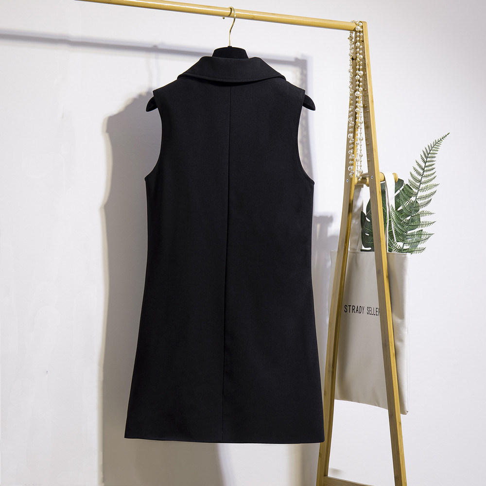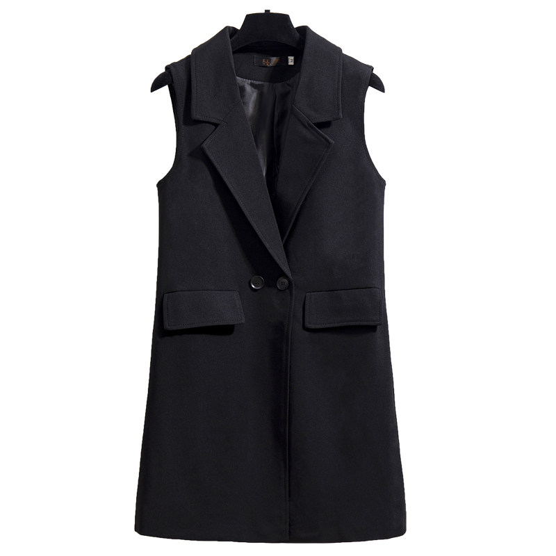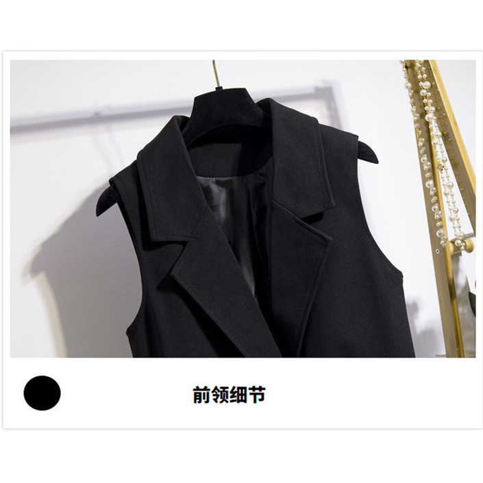 2021 spring and autumn long version of the fashion vest Korean version thin solid color pocket suit collar sleeveless vest horse clip jacket