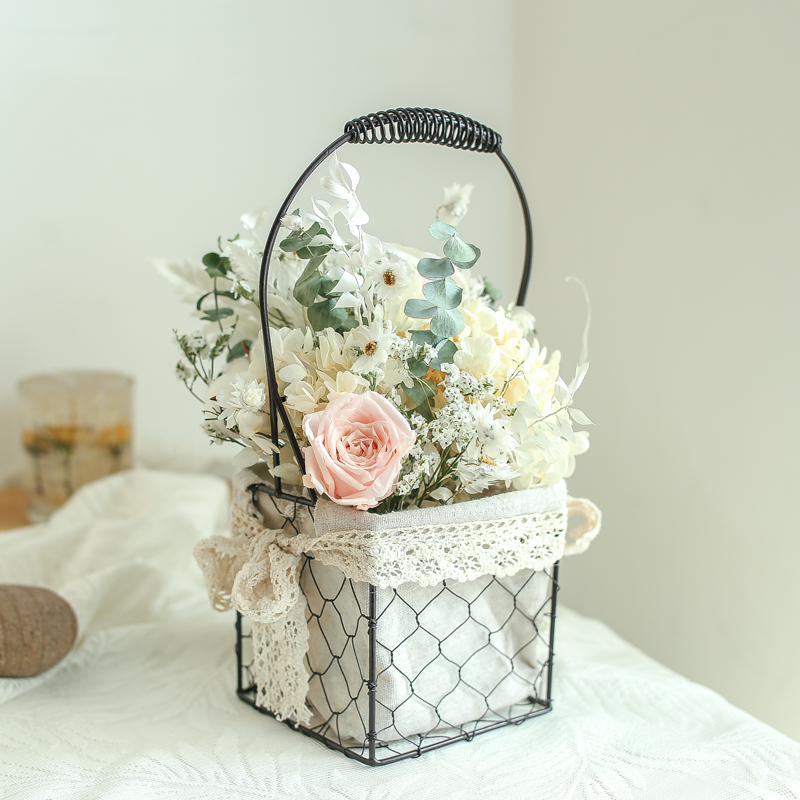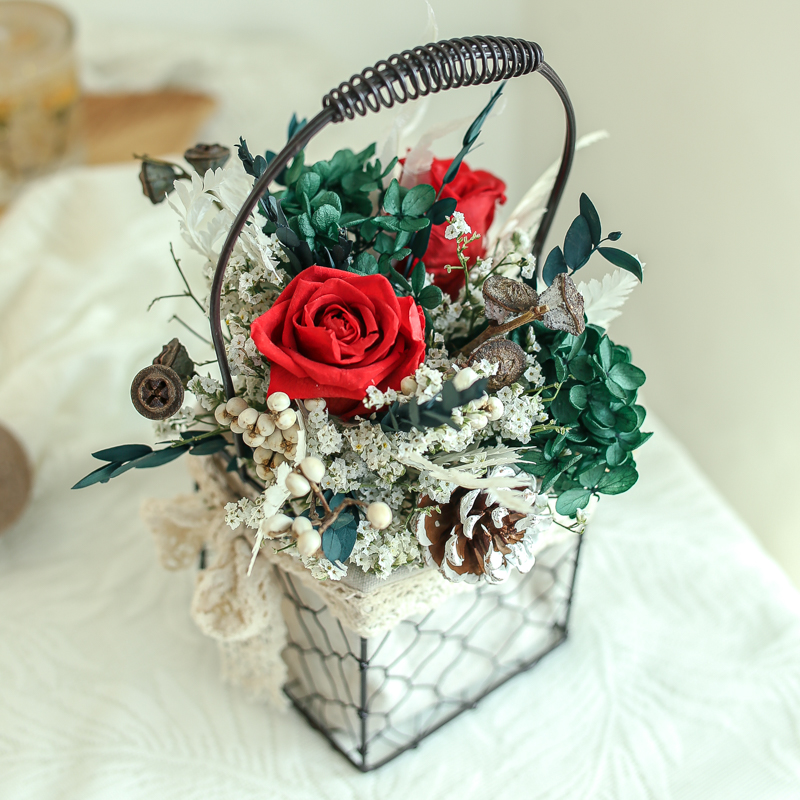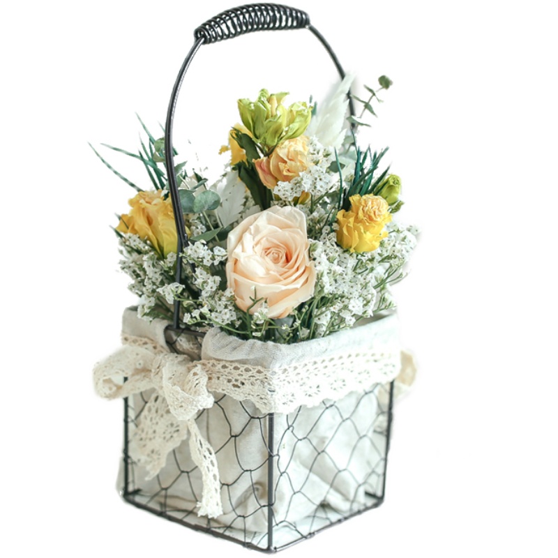 Powder Rose Evergreen Flower Bouquet Iron Art Flower Basket Blue Embroidered Ball Perpetual Flower Bouquet Iron Art Flower Basket Red Rose Perpetual Raw Flower Bouquet Iron Art Flower Basket Champagne Polenta Junsheng Bouquet Iron Art Flower Basket