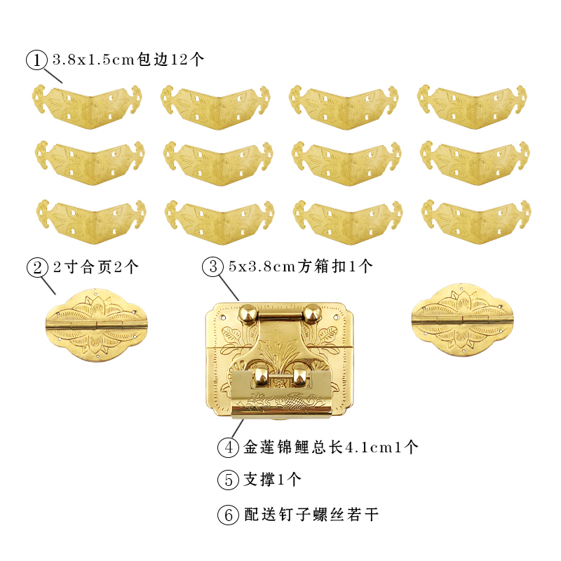 Chinese antique camphor wood box pure copper accessories wooden box accessories box buckle lock hinge handle wedding furniture set