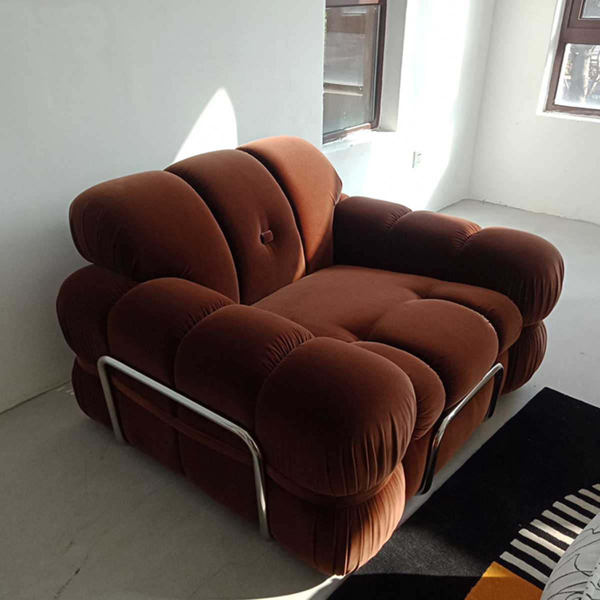 Fashion minimalist Chocolate Colour Fabric Sofa suede sofa Single courteous courteous sofa Multi-People's type Small family Type