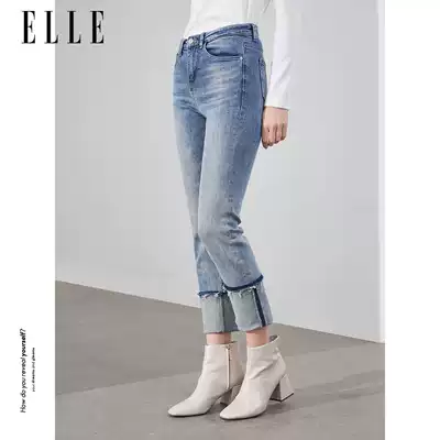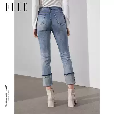 ELLE new cotton foot wide roll edge White retro versatile type pipe pants jeans women