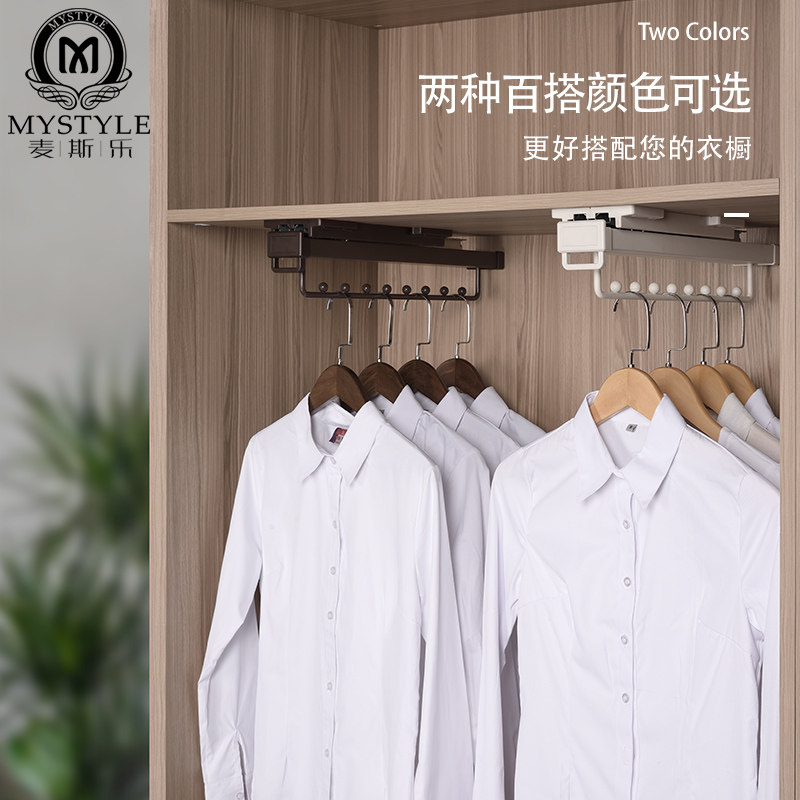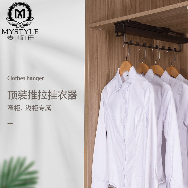 Wardrobe top mounted hanging rod longitudinal push stretch shrink hanger Wardrobe artifact Vertical Yitong hardware accessories full set