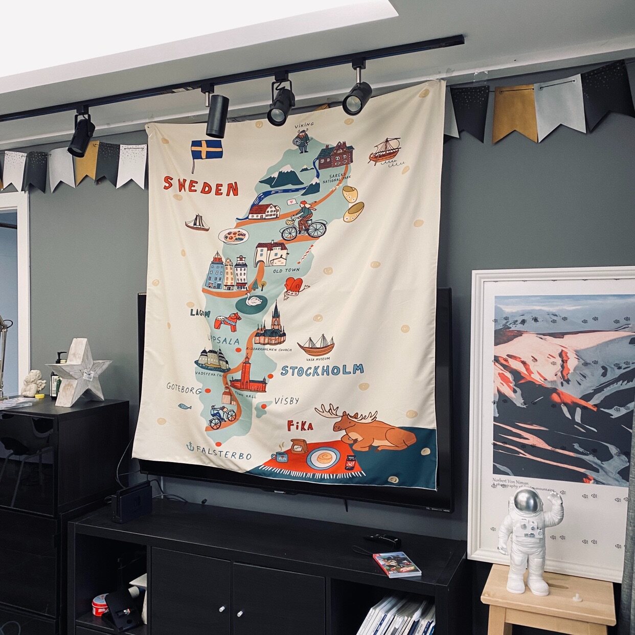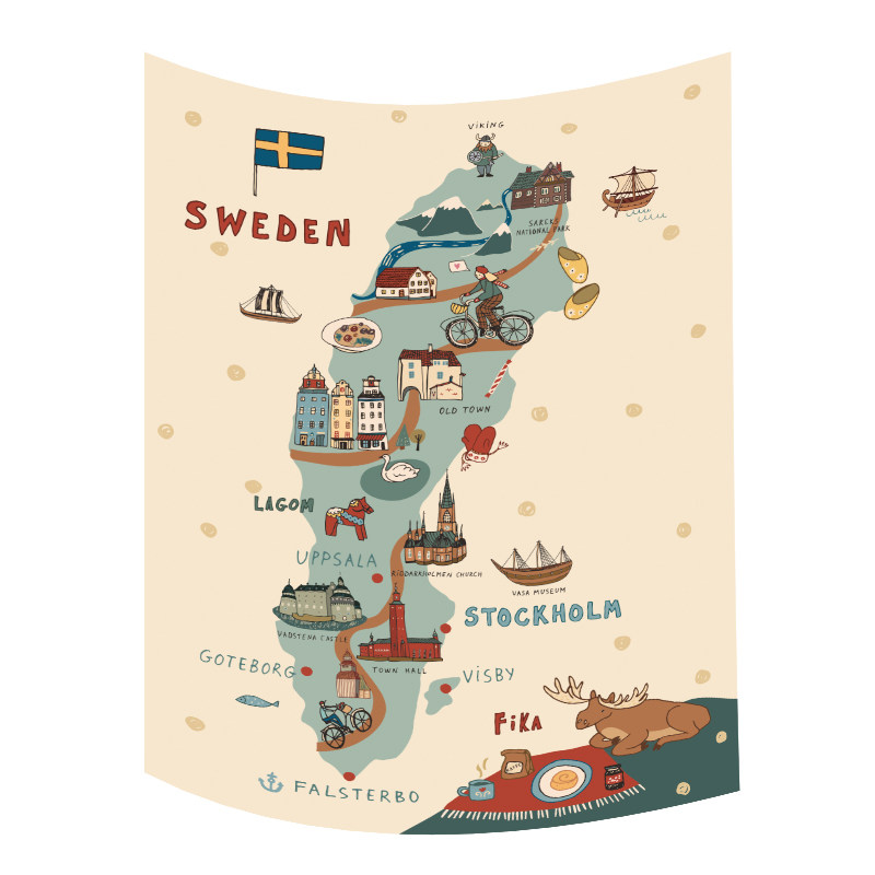 Sweden map Mountain system Puzzle Hanging Cloth Red Fox Hanging Cloth Yellow Car Pendant Cloth National Park Red Wood Raft Moon Chair Hanging Cloth Caravan Hanging Cloth