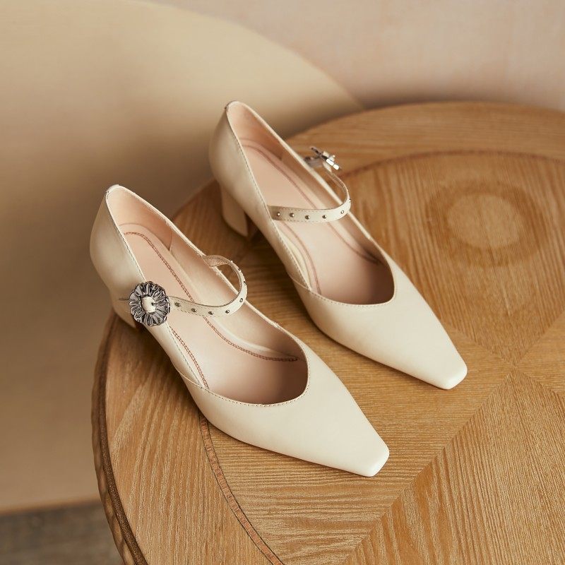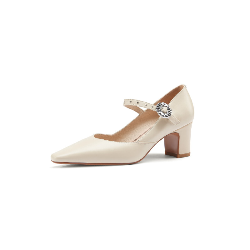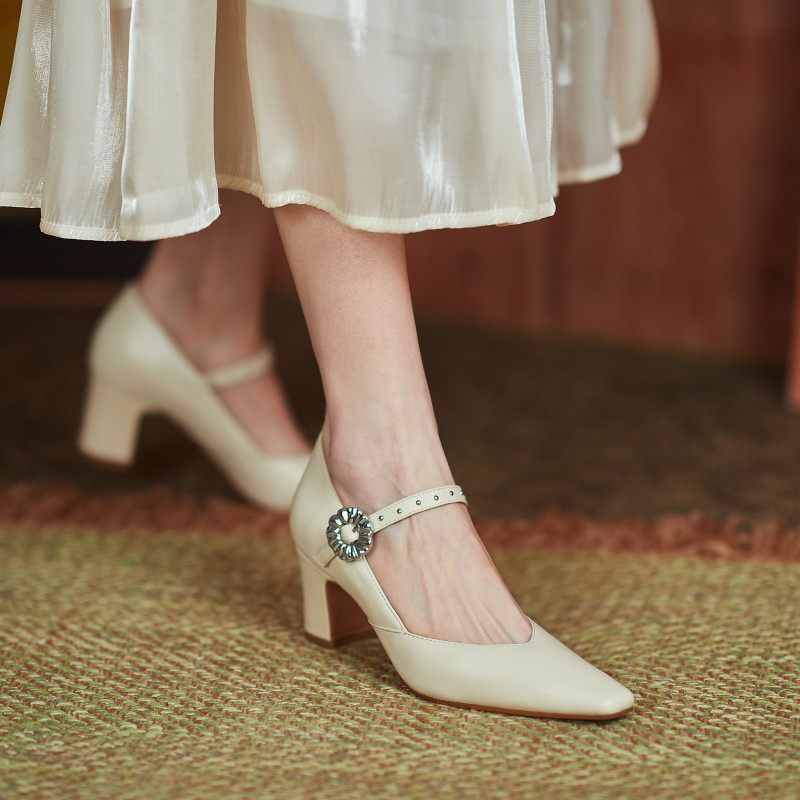Old plate lady self-leaving Korean version High heel small red shoes Single shoe pointed leather strap buckle coarse and Mary Jane shoes