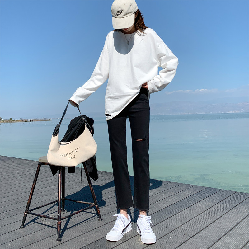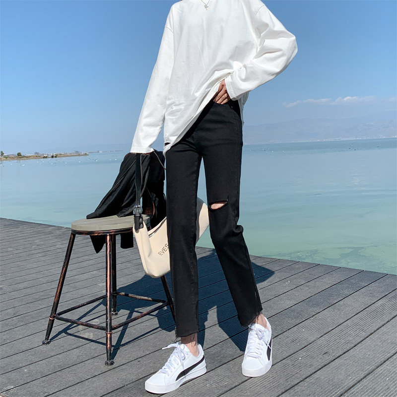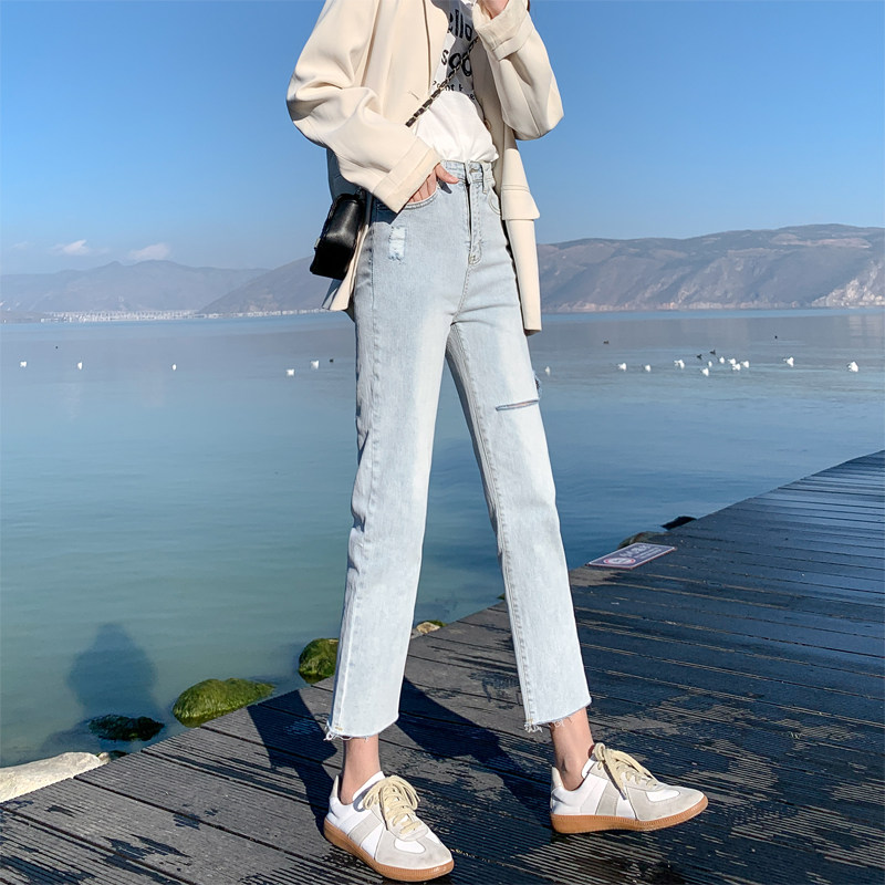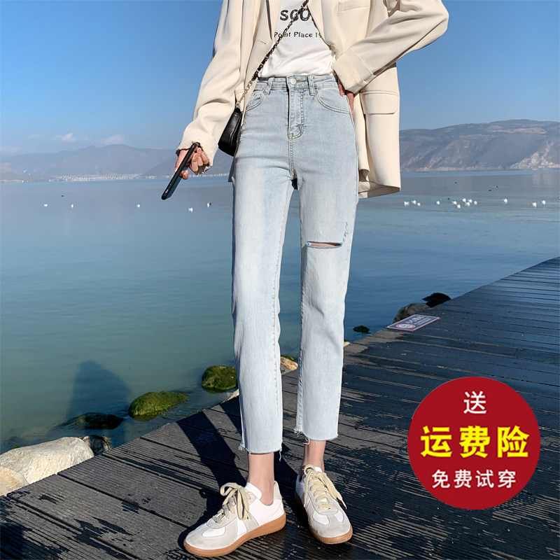 Light jeans women loose high waist 2021 spring small straight tube new black slim tube pants