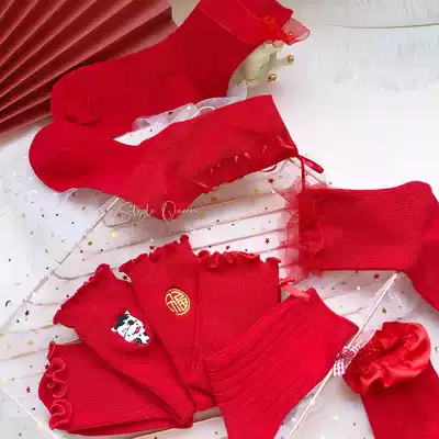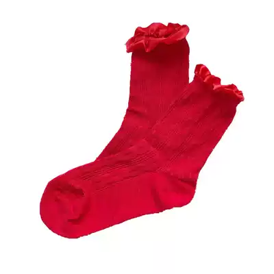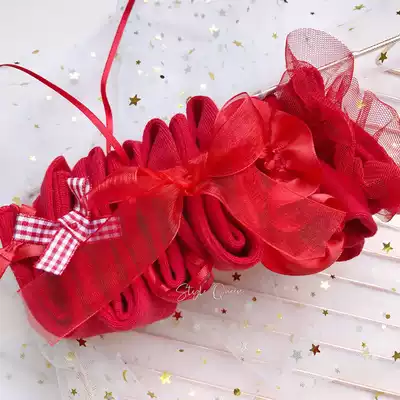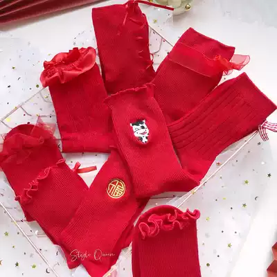 This year's red socks Lolita middle tube girl sweet lace bow Japanese Lady wedding embroidery cotton socks