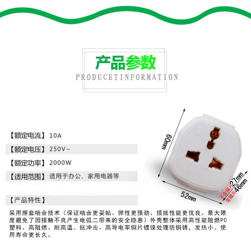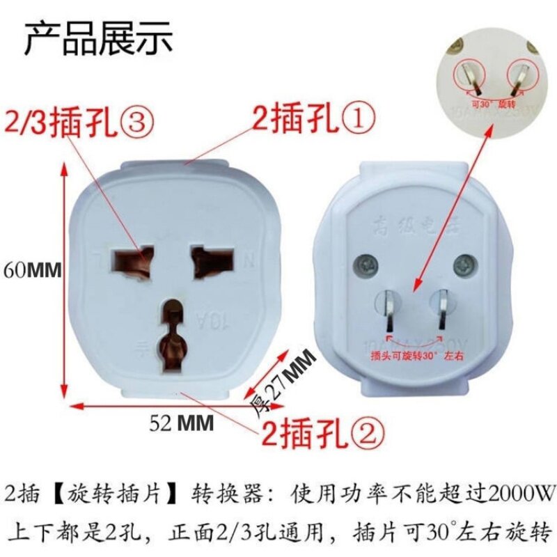 2-plug conversion plug 2 foot-to-3 holes 2 holes porous power supply converter Erflat triple flat adapter 2-to-3 plug