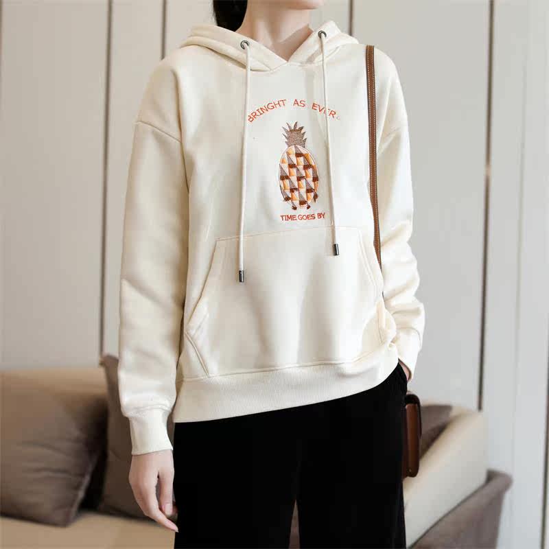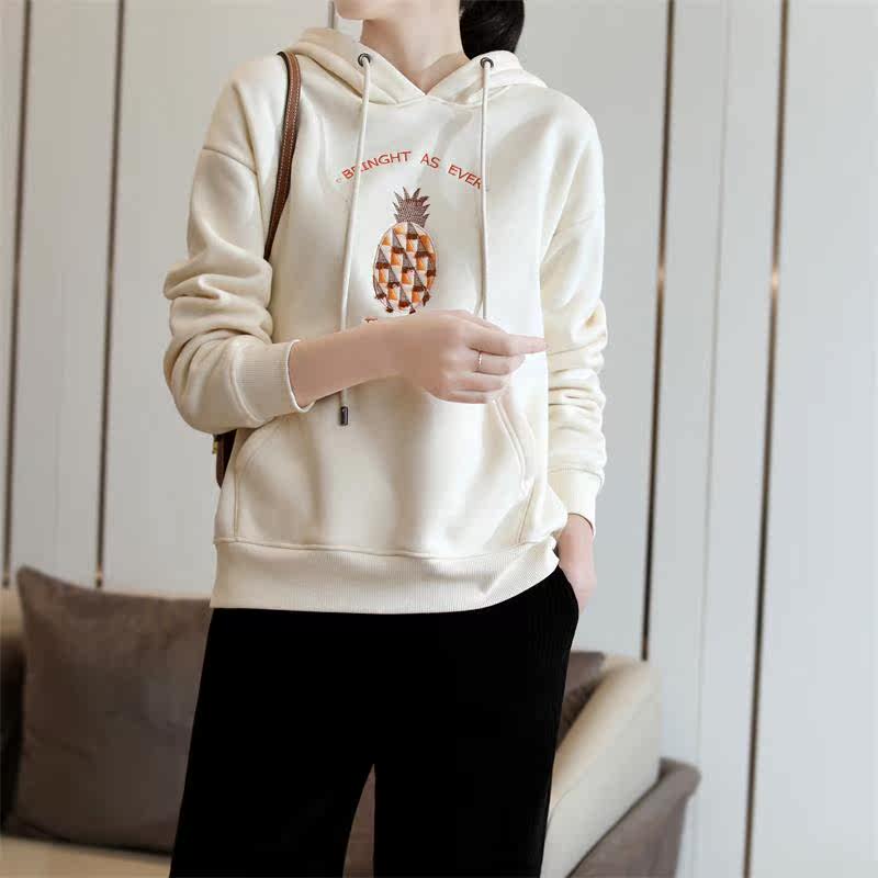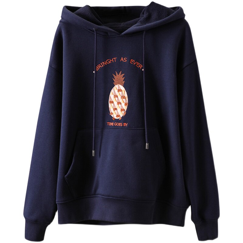 Sweater Garnapped thickened Women 2022 Autumn Winter New Korean version Loose Warm Cotton Embroidered Pineapple set with cap jacket
