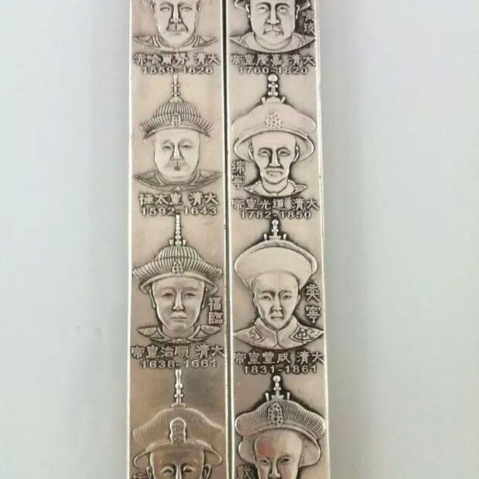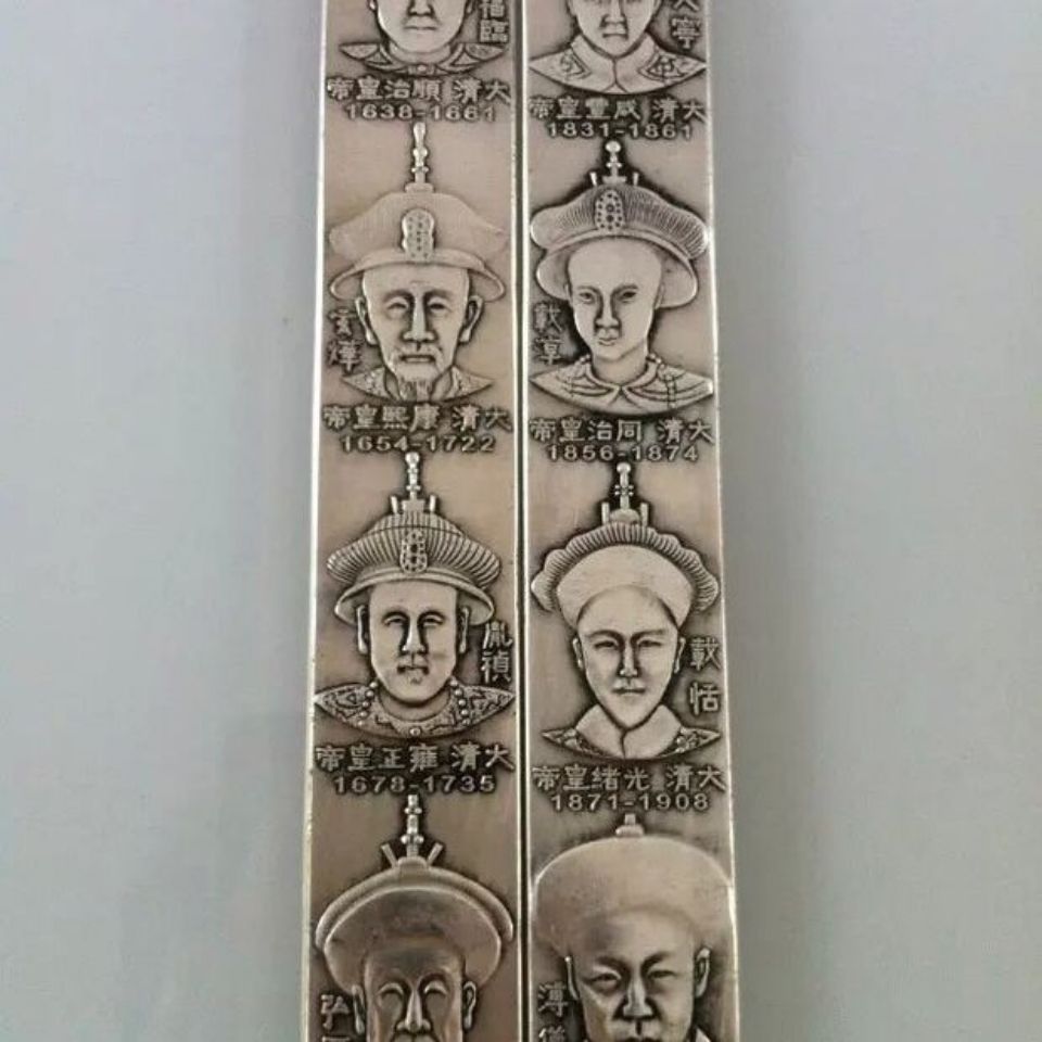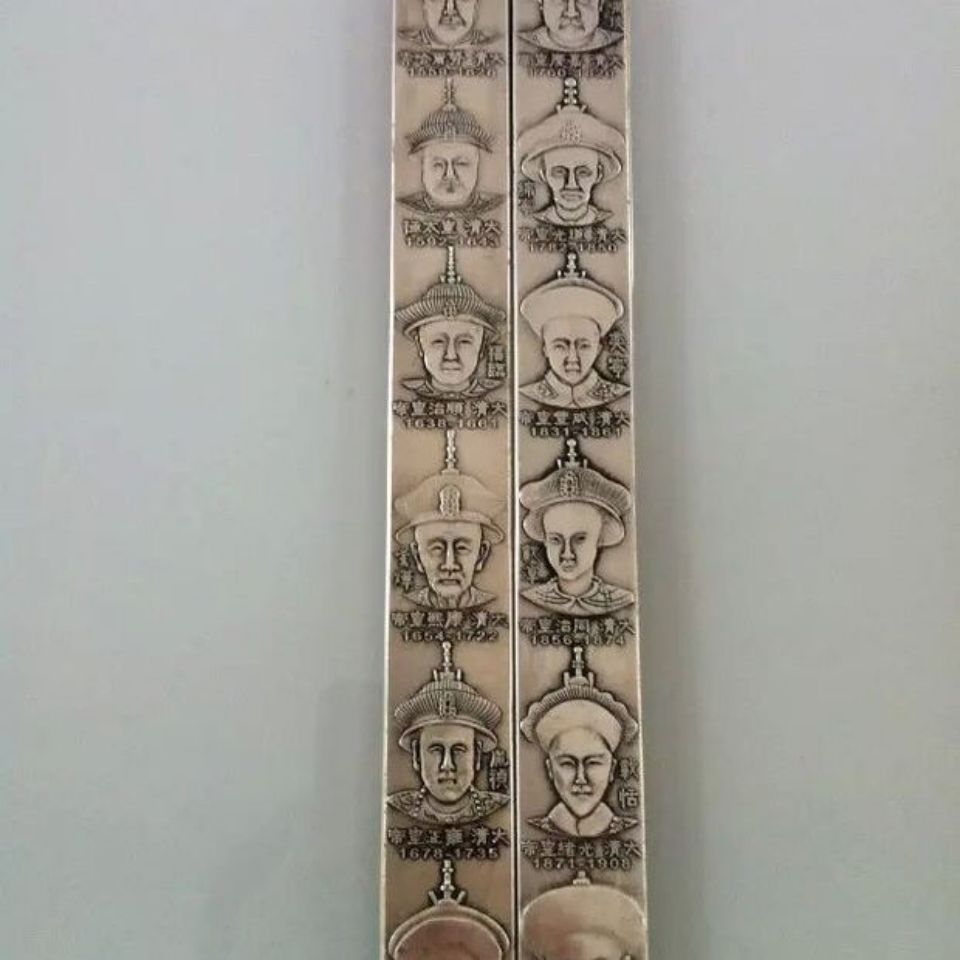 The four treasures of the study are white copper and gilt-silver ruler "The Twelve Emperors of the Qing Dynasty's ruler" fine white copper paperweight