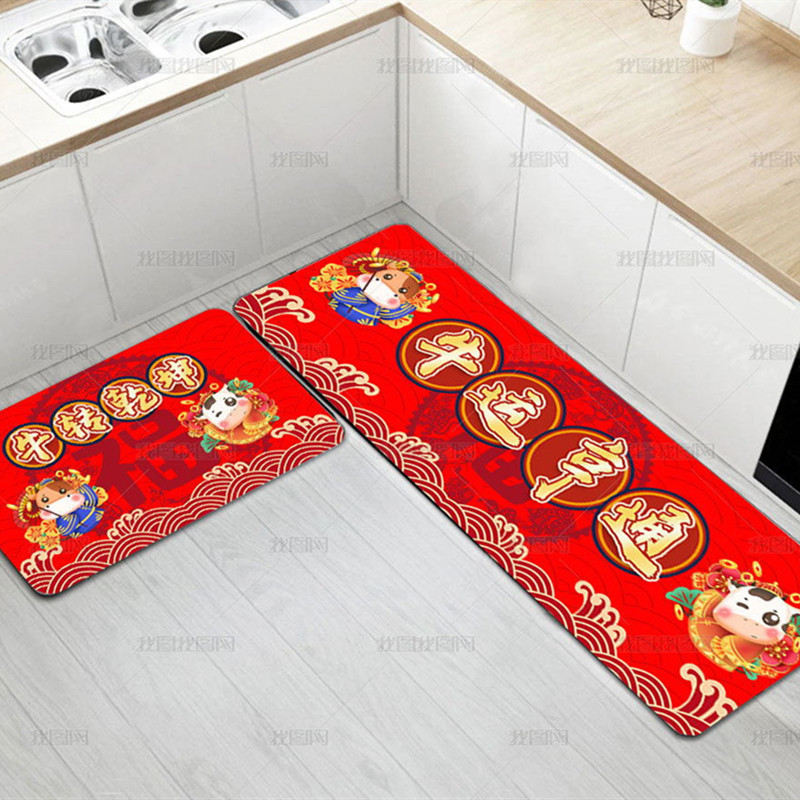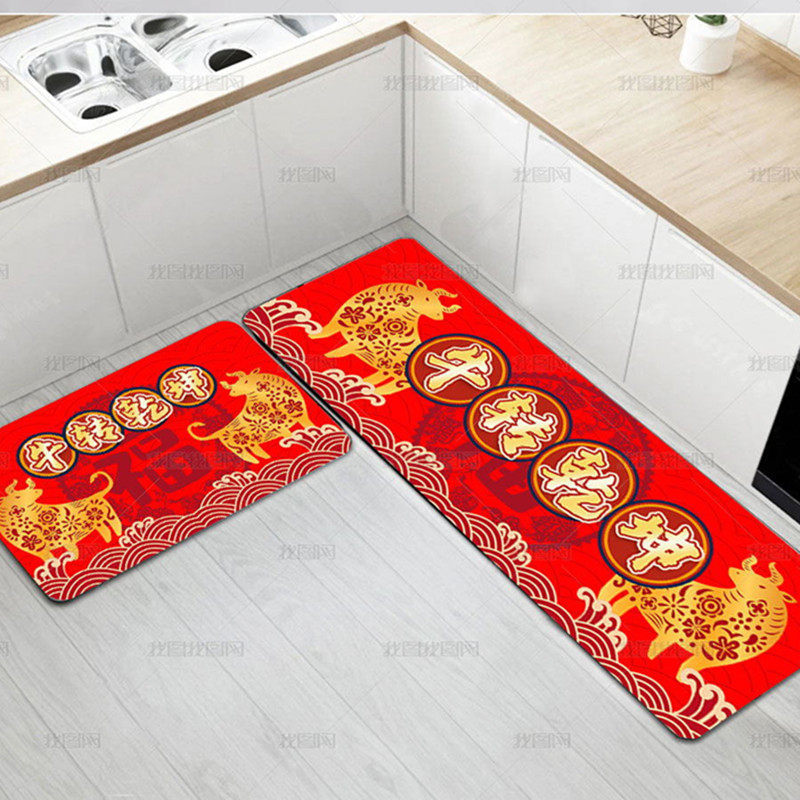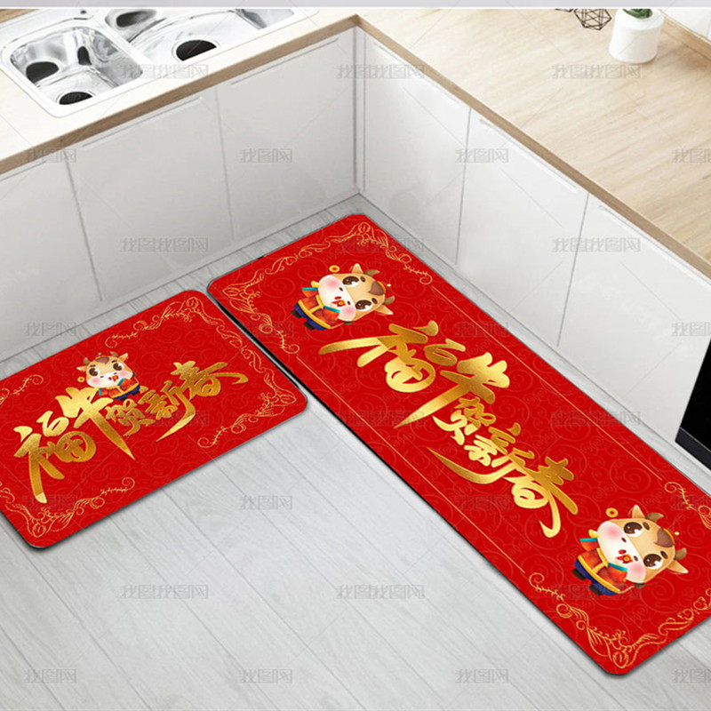 New Year's festive red floor mat for the year of the ox door mat for entrance door entrance bedroom kitchen bathroom bathroom floor mat