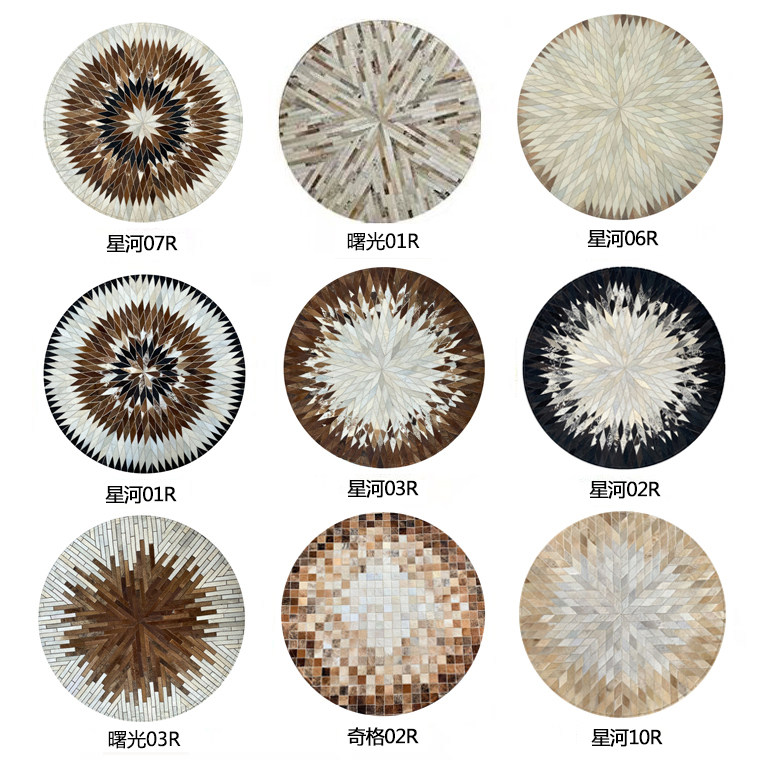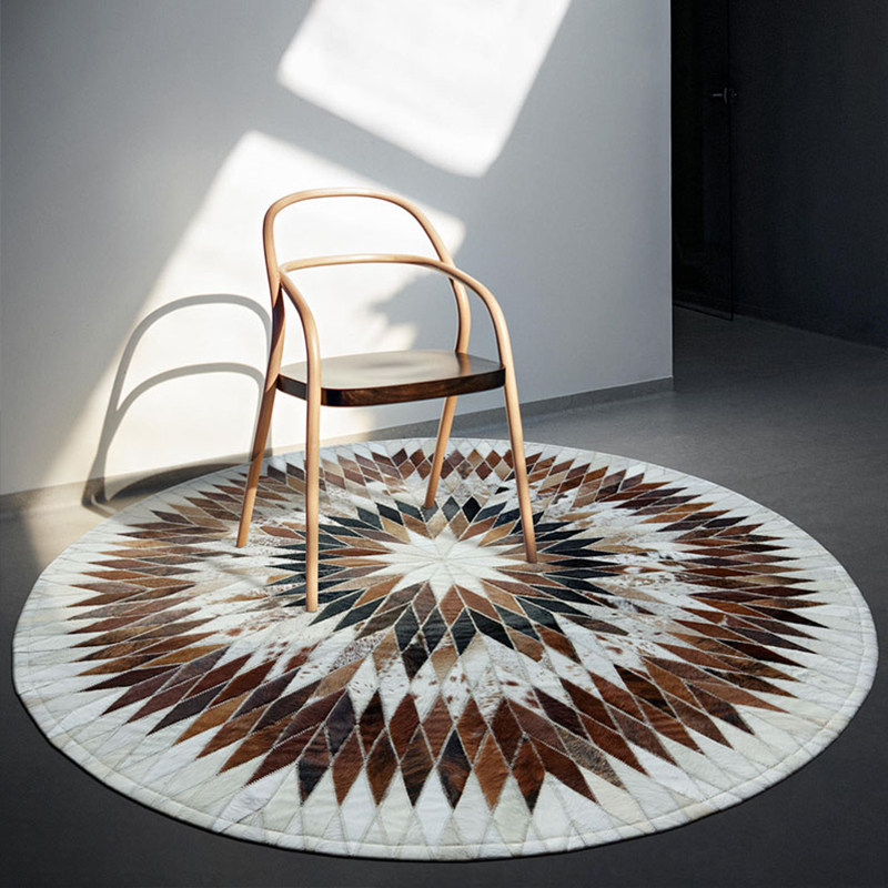 Round carpet calfskin stitching living room Nordic modern light luxury advanced coffee table floor mat study bedroom bedside blanket