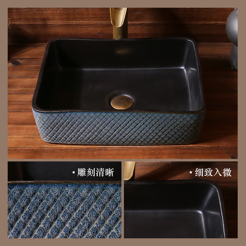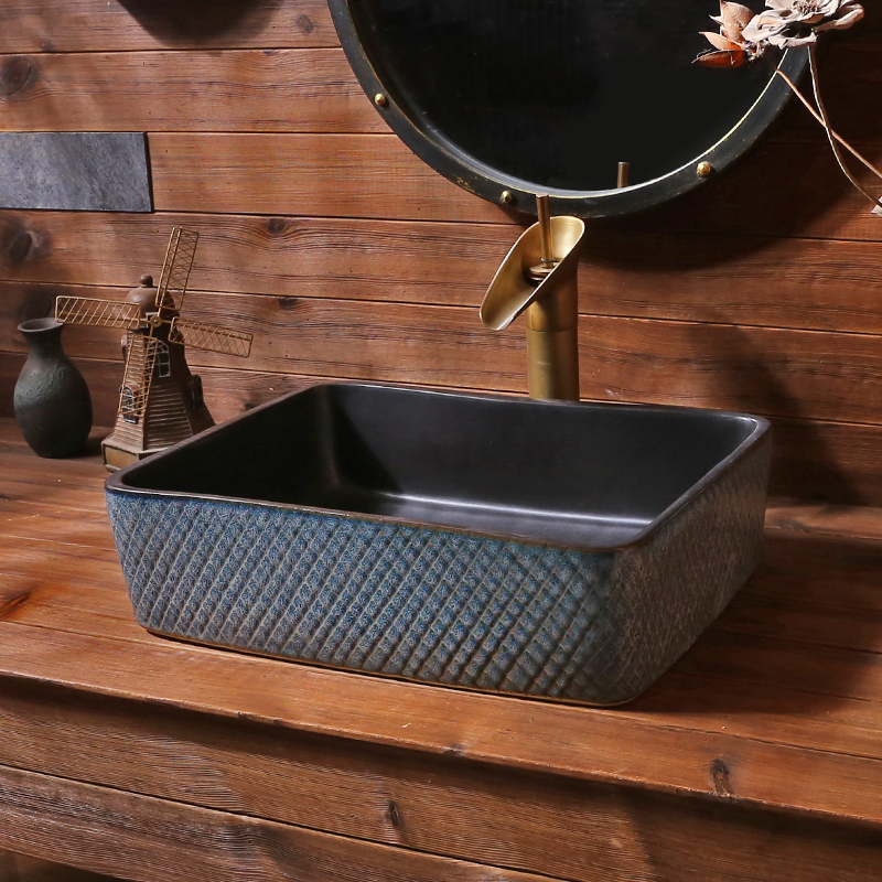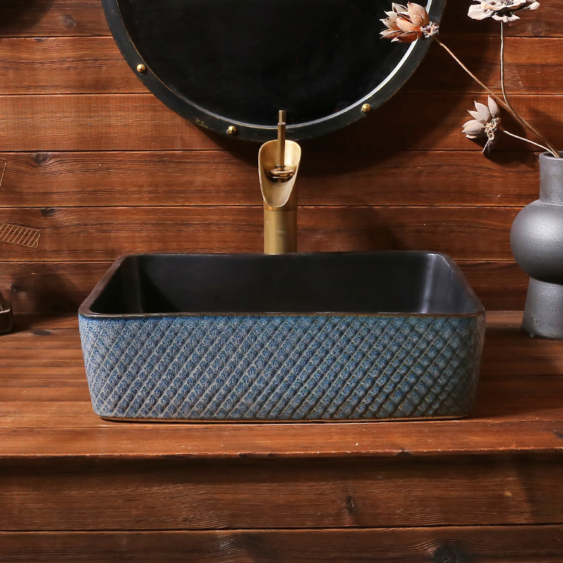 Ripple art countertop basin rectangular ceramic washbasin antique countertop basin basin retro countertop washbasin home