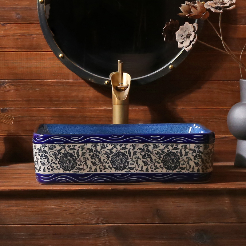 Blue and white porcelain art countertop basin rectangular ceramic washbasin Chinese-style basin dressing room countertop washbasin home