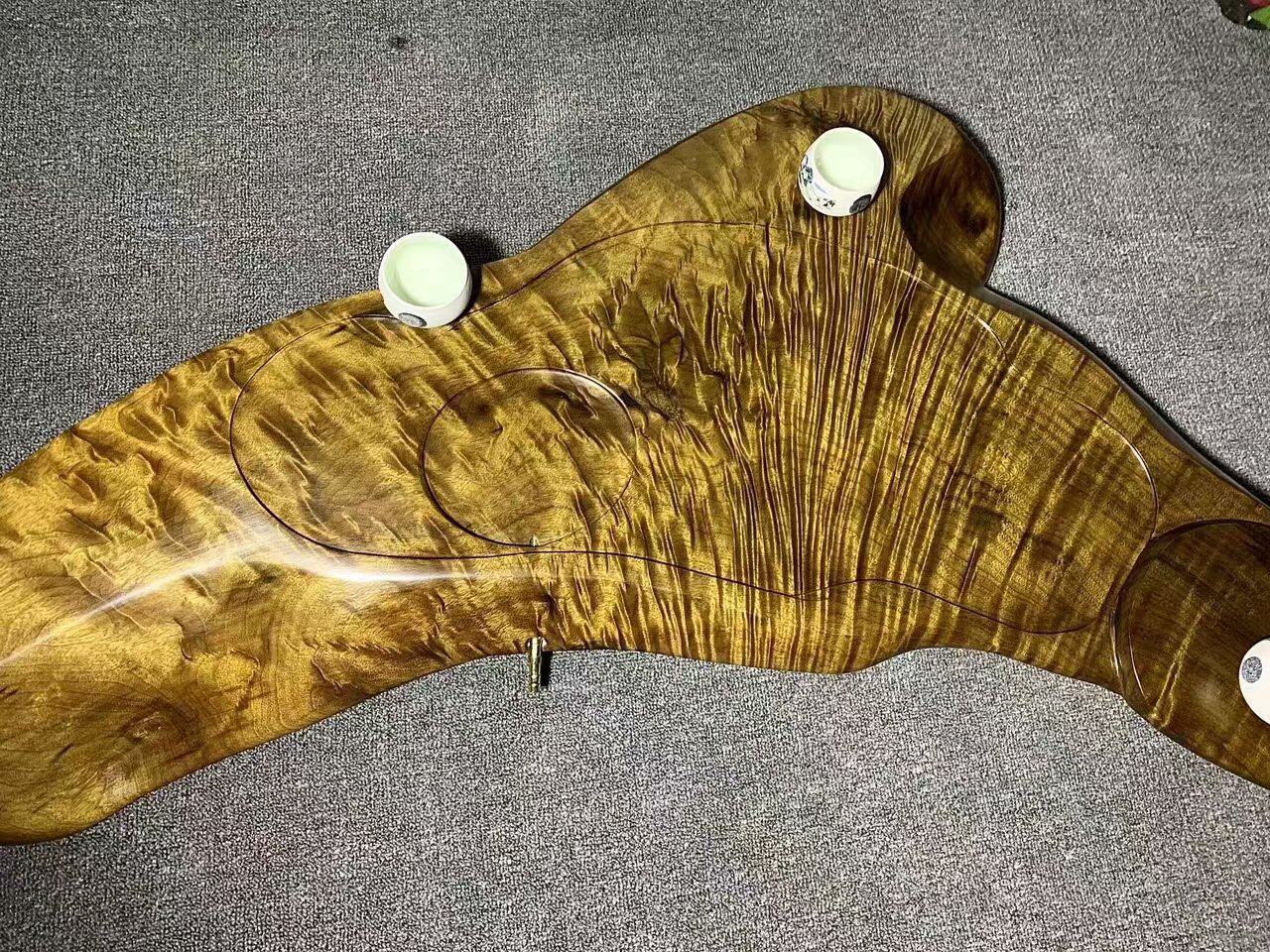 Golden Silk Nanu Wood Tea Tray Cloudy Wood Simple Tea Tray Full Water Polo King Yellow Craft Gift Pendulum Decoration Root Engraving Carved Tea Tray