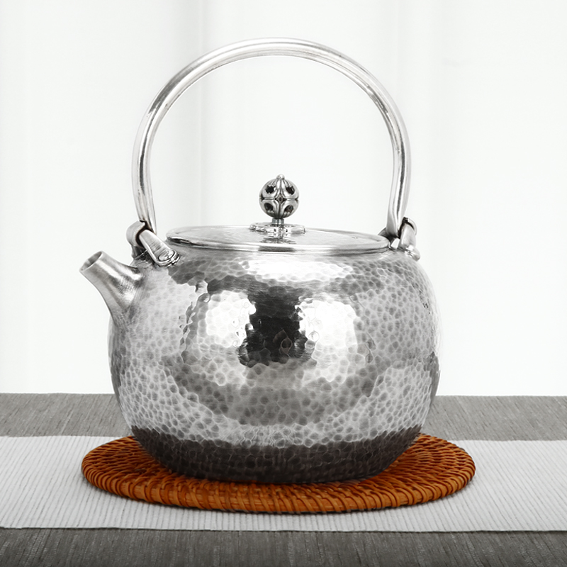 The world silver floor sterling silver 999 handmade teapot bright surface hammer pattern boiling kettle silver kettle boiling kettle family tea ceremony tea