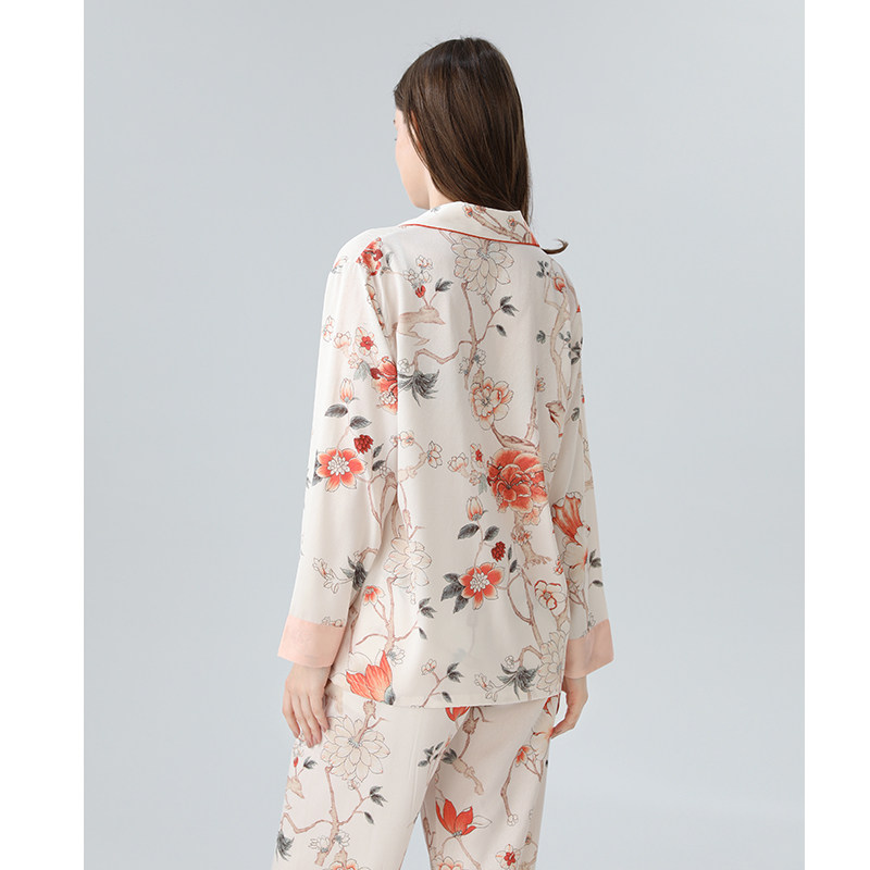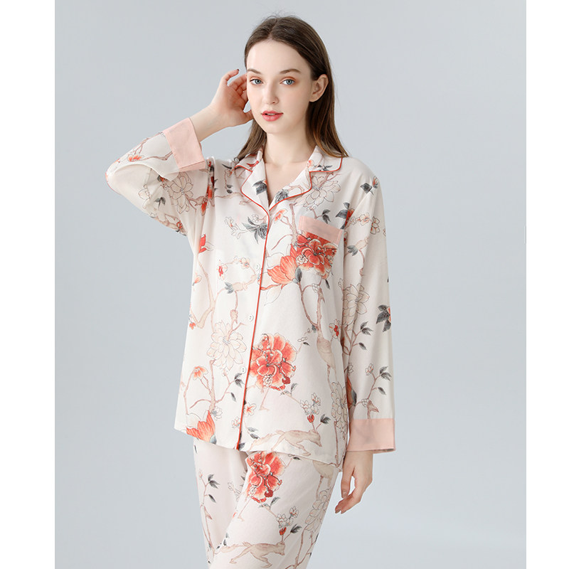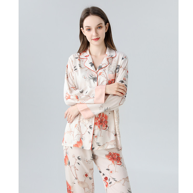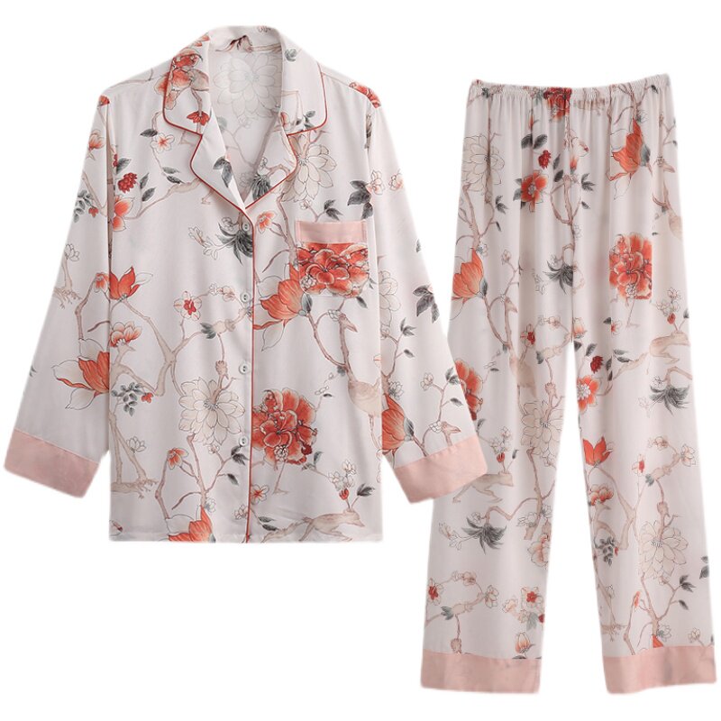 IIZZINI original 2022 pyjamas women's spring and autumn long sleeve ice silk Chinese windy flower luxury home suit suit