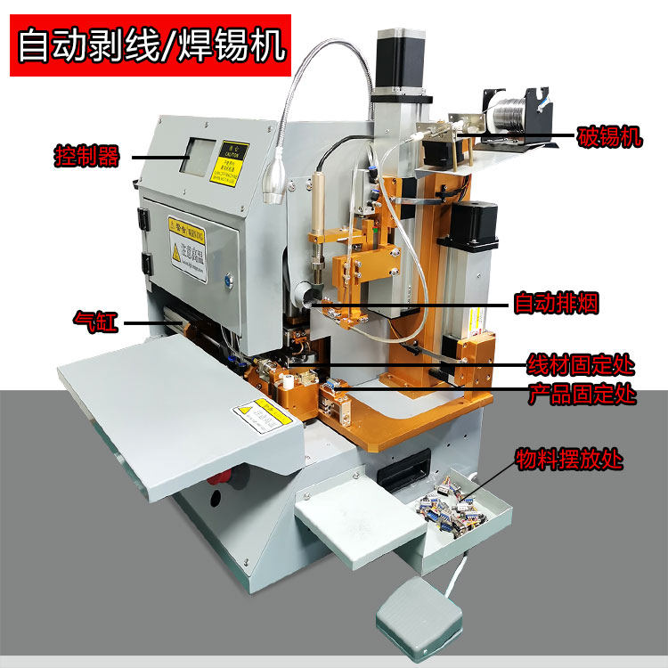 Automatic stripping soldering machine soldering USB data PCB line plate machine LED light robot stripping foot pedal
