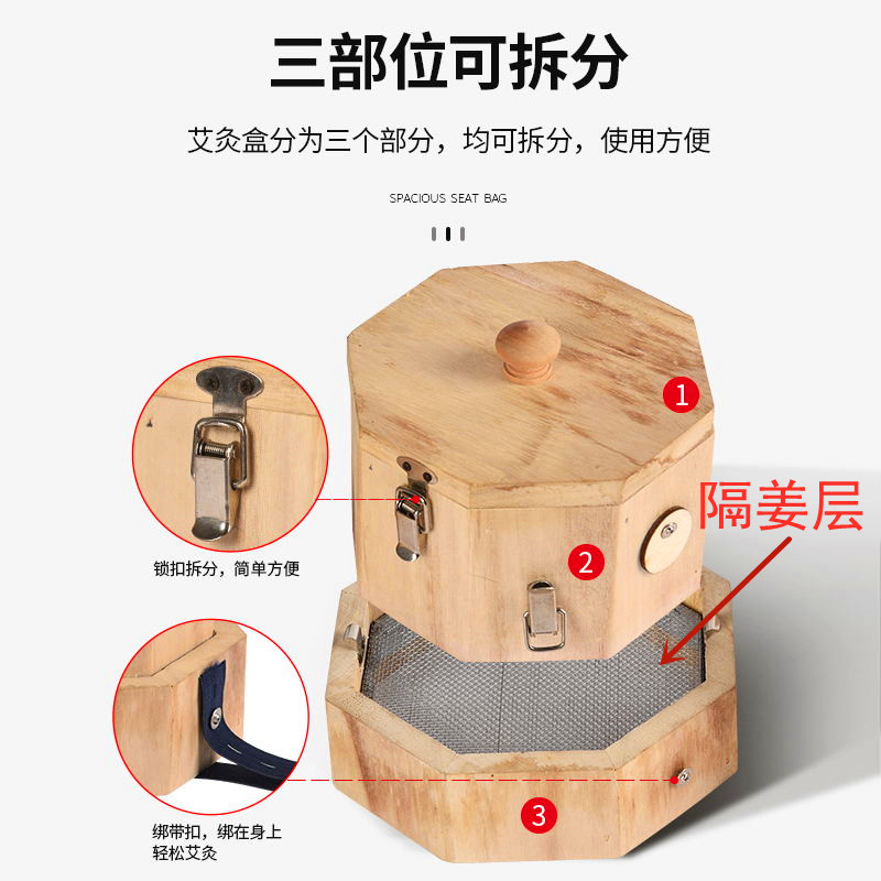 Bagua paulownia solid wood moxibustion box navel moxibustion waist and abdomen moxibustion box warm moxibustion device portable household moxibustion device warmer