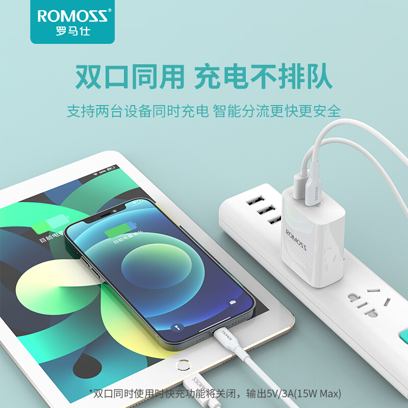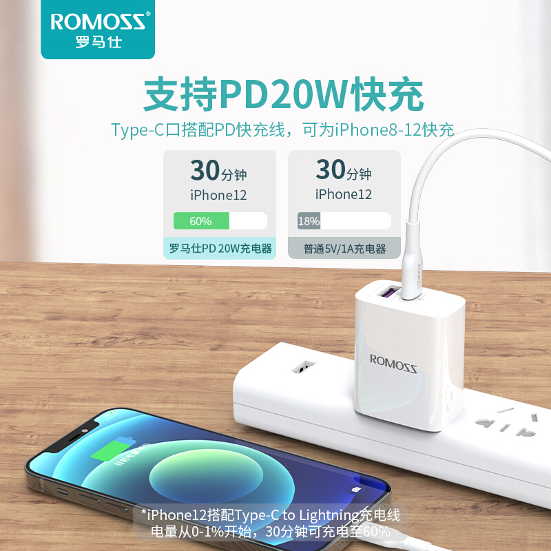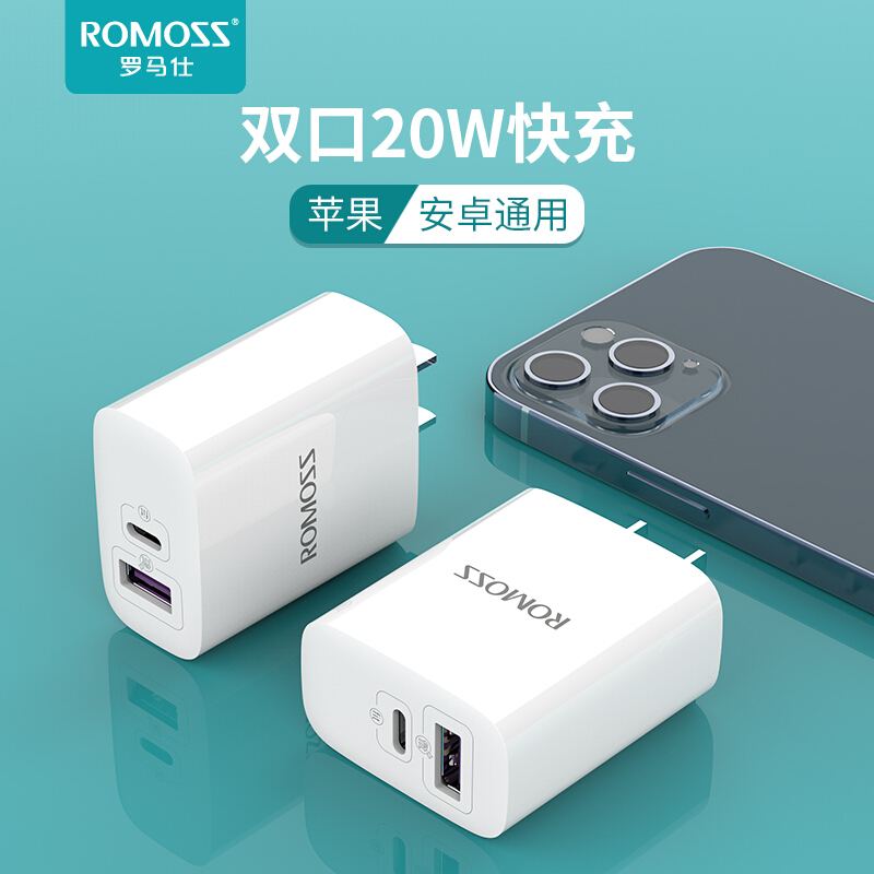 Romas Apple PD20W 18W dual fast charger mobile phone TYPE-C fast charging head universal for iPhone12Pro 11 XS 8P Huawei Xiaomi i