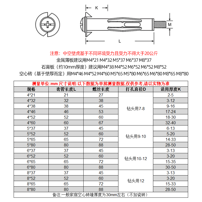 (M4M5M6M8) Blue and white zinc hollow wall tiger expansion screw hollow curtain wall sleeve aircraft plasterboard fluffy
