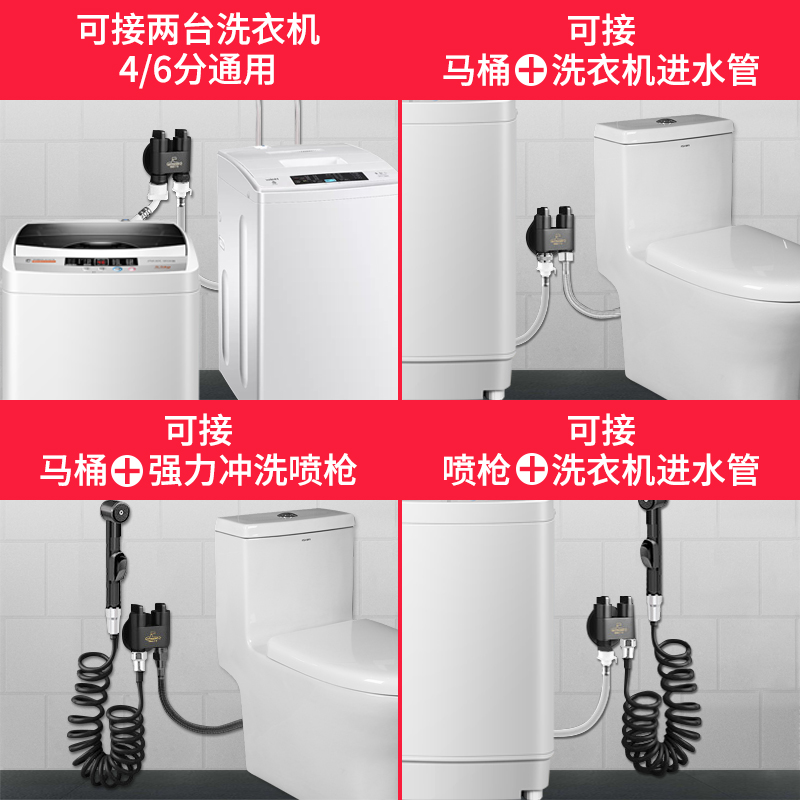 ① Bright light-(can be connected to two 4-point inlet pipe) ②Bright light-(can be connected to 4-point inlet pipe 4-point washing machine) ③ bright light-(can be connected to 4-point inlet pipe 6-point washing machine) ④bright light - (can be connected to 4-point inlet pipe 6-point washing machine) ④ bright light - (can be connected to 4-point inlet pipe 6-point washing machine)-