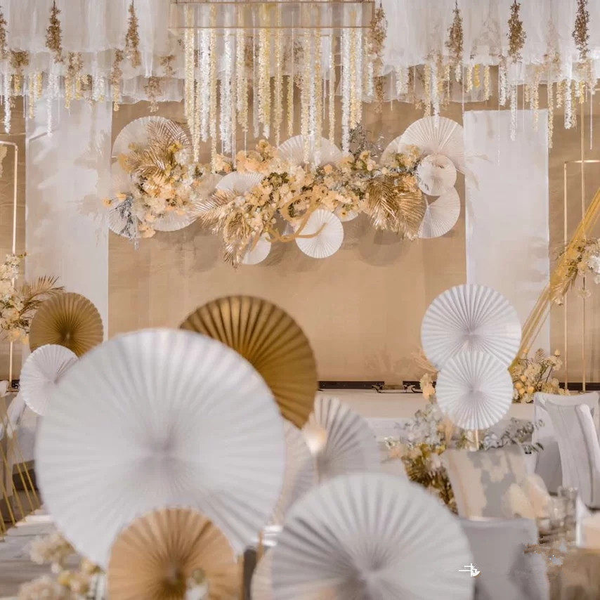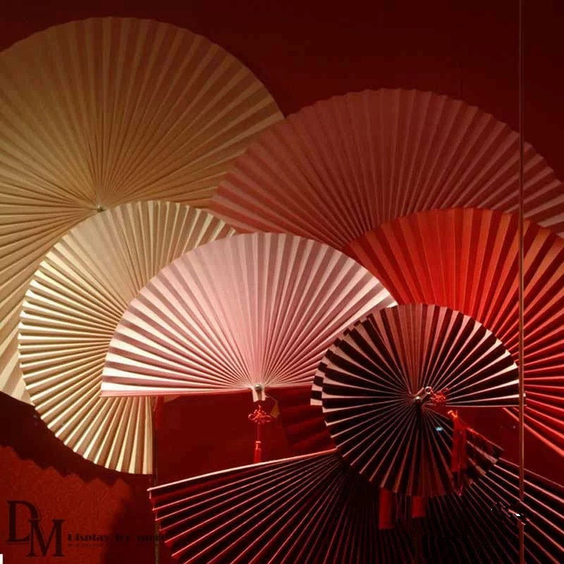 Chinese style wedding folding fan folding craft decoration wedding beauty Chen window props origami red half fan round decoration